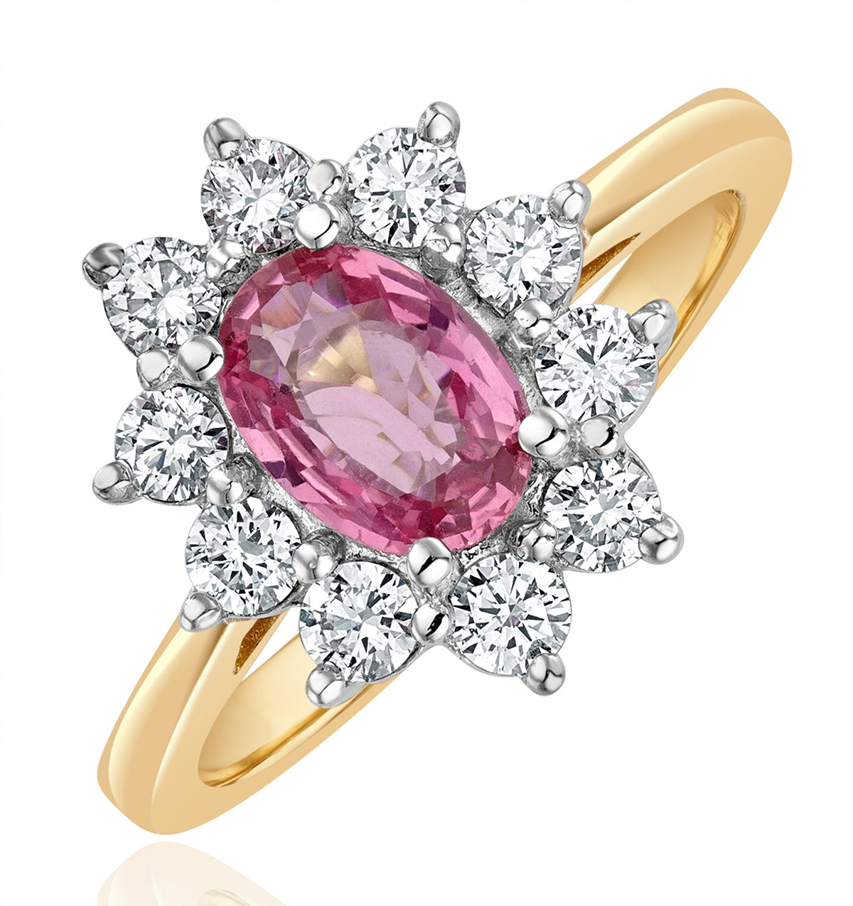18K Gold 0.85ct Pink Sapphire and 0.12ct Diamond Ring