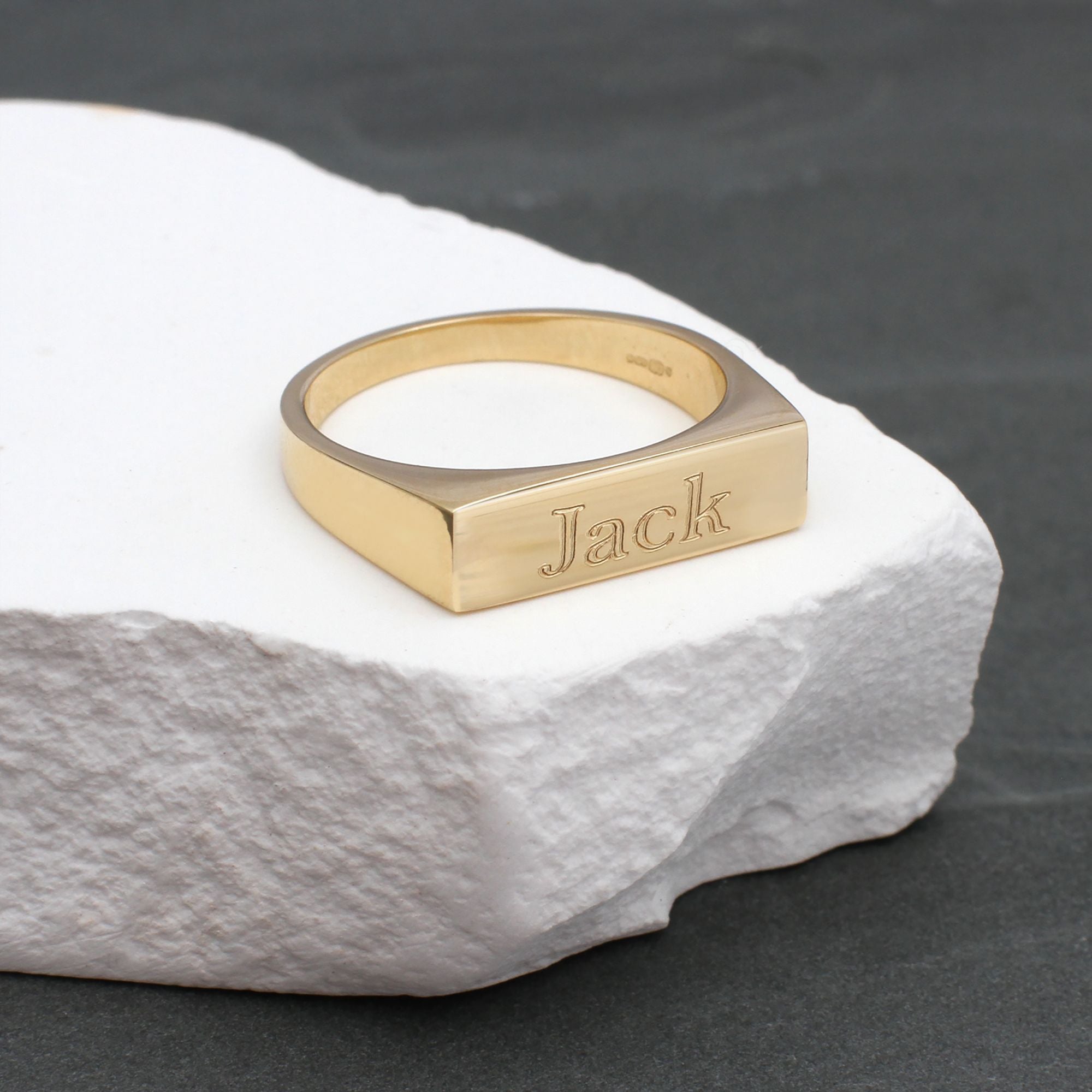 Solid Gold Rectangular Bar Signet Ring