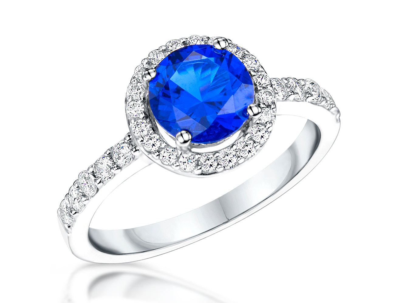 Sterling Silver Sapphire Blue Cubic Zirconia Halo Ring
