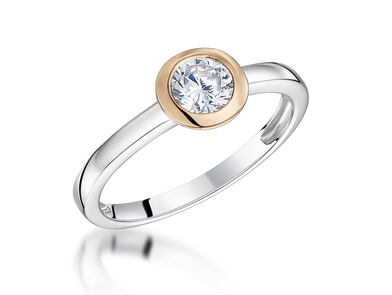 Sterling Silver Rose Gold Bezel Set Solitaire Ring