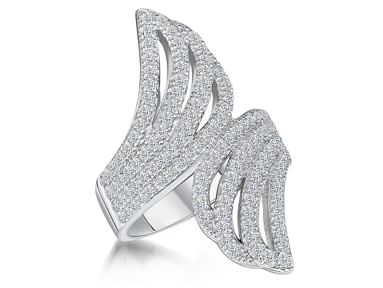 Sterling Silver Wings Ring Pave Set Cubic Zirconia Stones