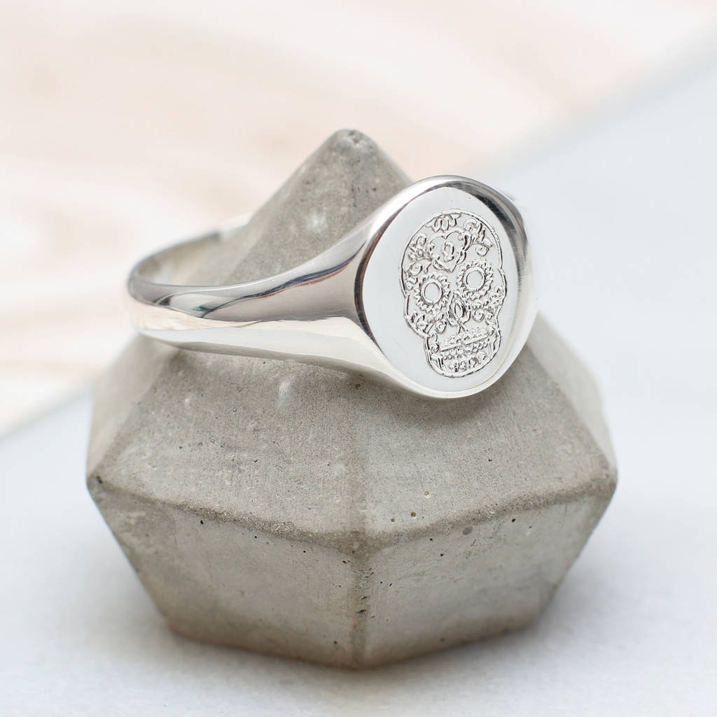 Sterling Silver, Rose Or Yellow Gold Day Of The Dead Signet Ring