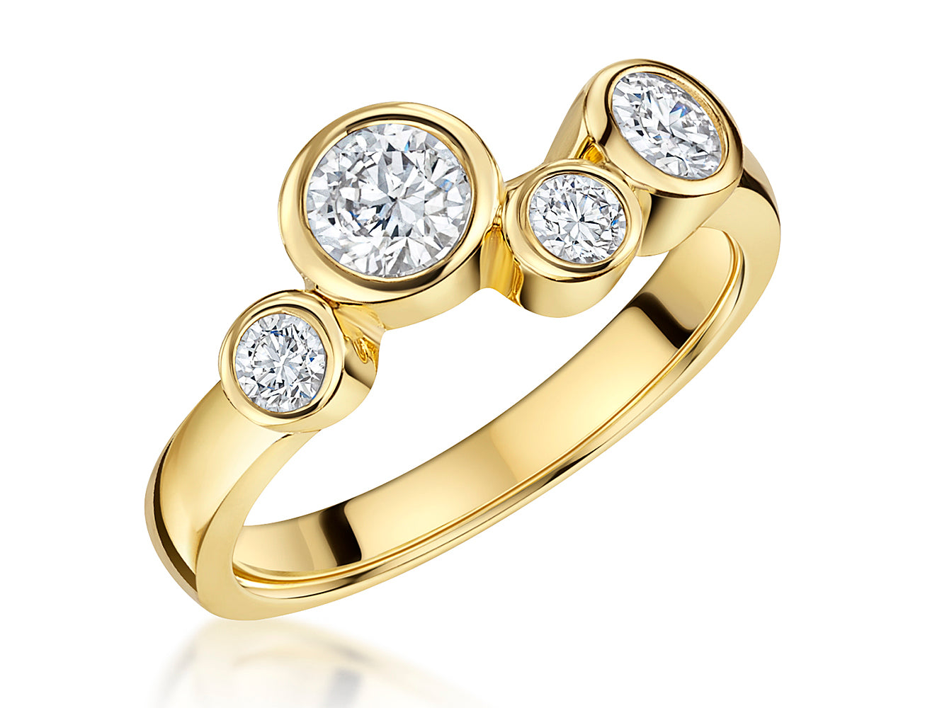 Yellow Gold Five Stone Bubble Ring Set With Cubic Zirconia Stones