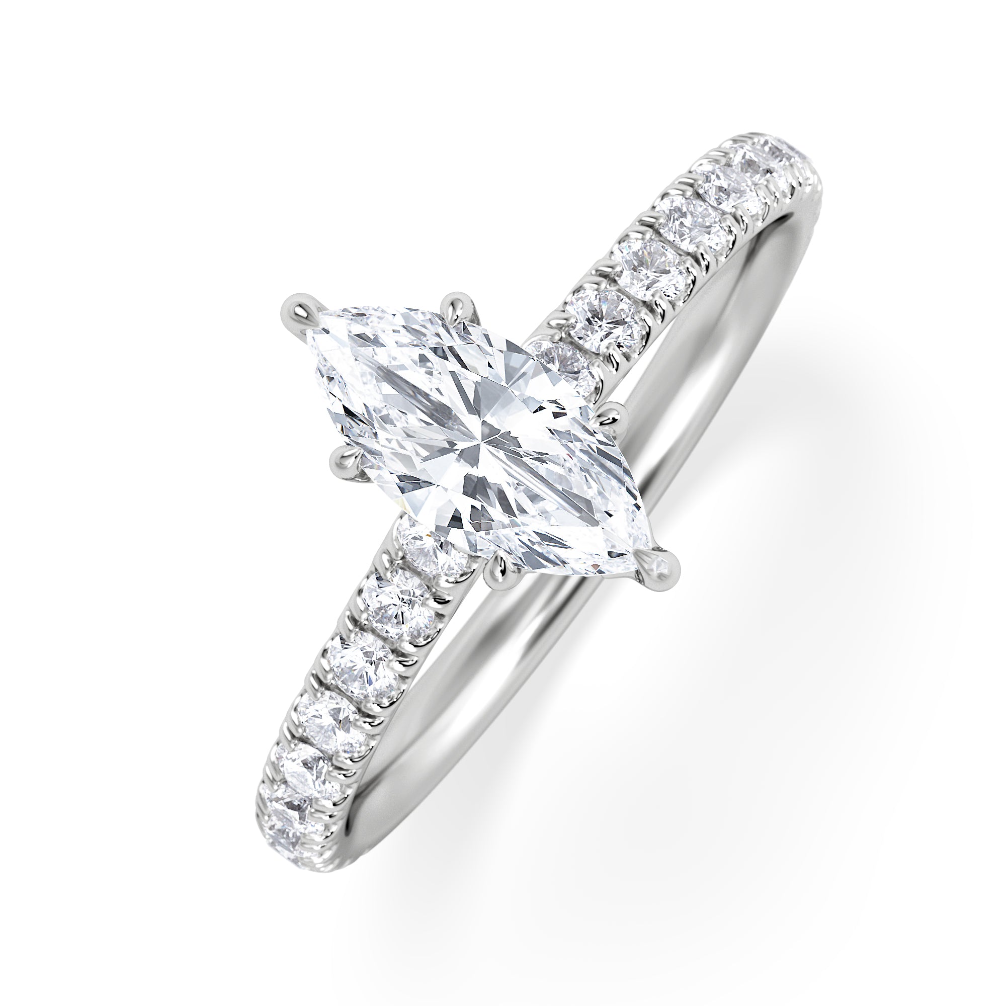 Amora Marquise 0.97ct Hidden Halo Lab Diamond Engagement Ring with Side Stones Set in 18K White Gold