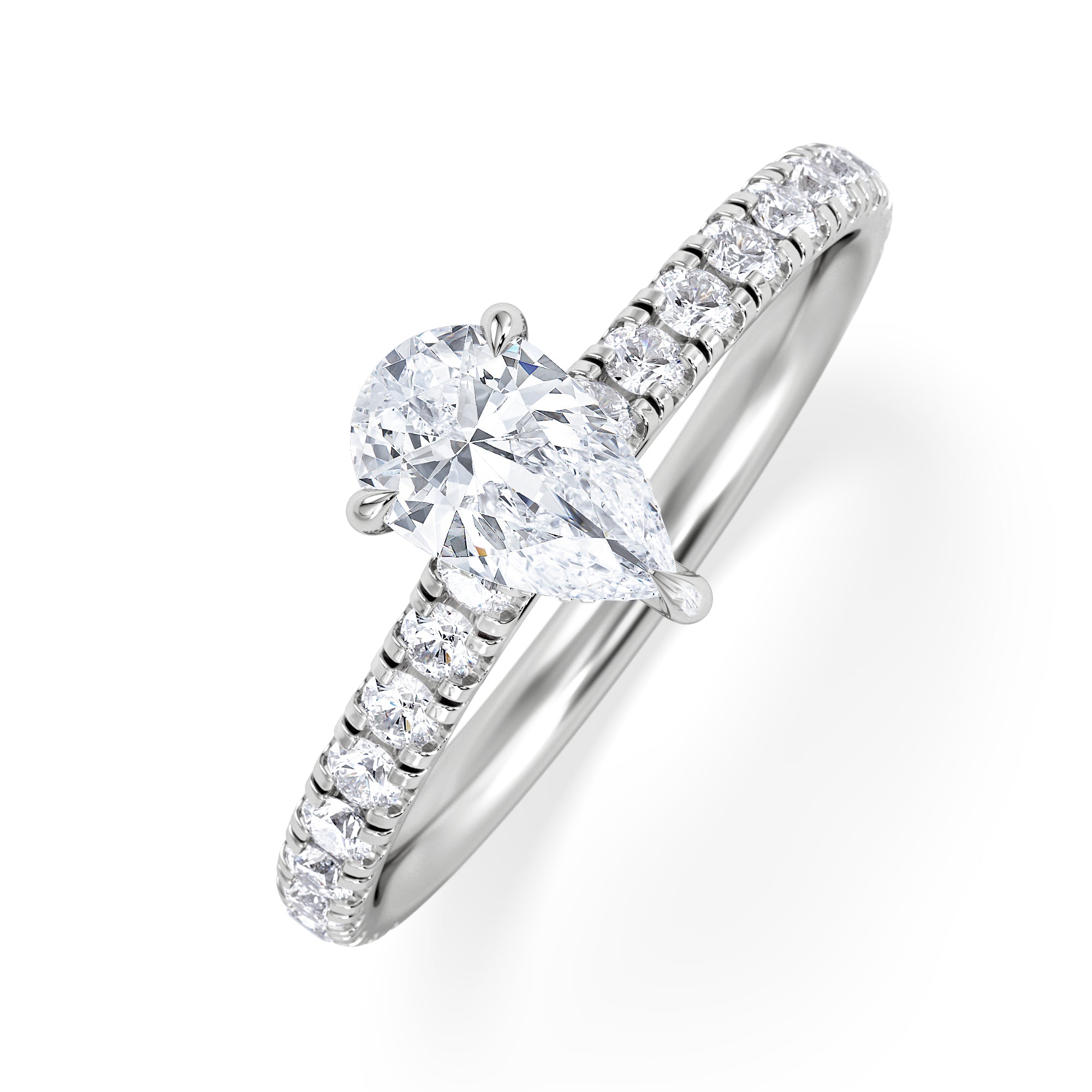 Amora Pear 0.97ct Hidden Halo Diamond Engagement Ring With Side Stones Set in 18K Platinum