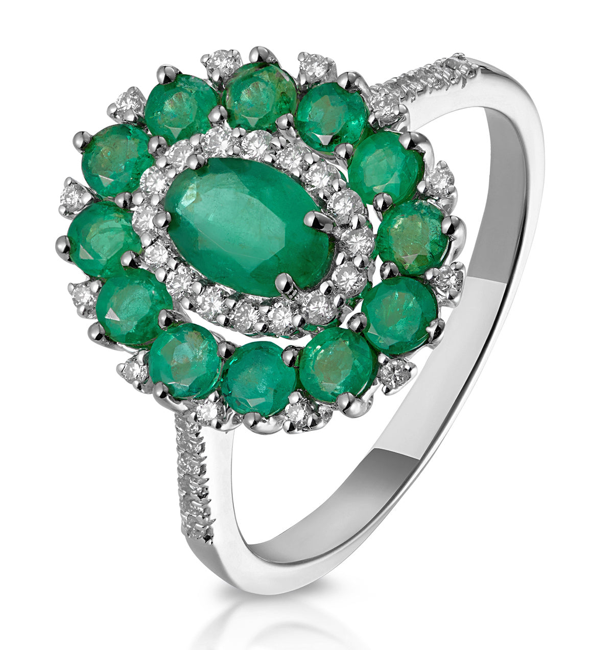 1.35ct Emerald Lab Diamond Halo Ring in 9K White Gold – Asteria