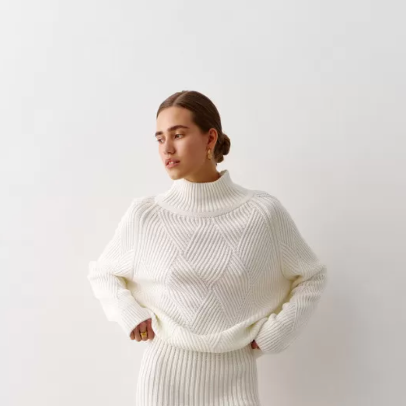 Anya Oversized Braided Sweater | Beige