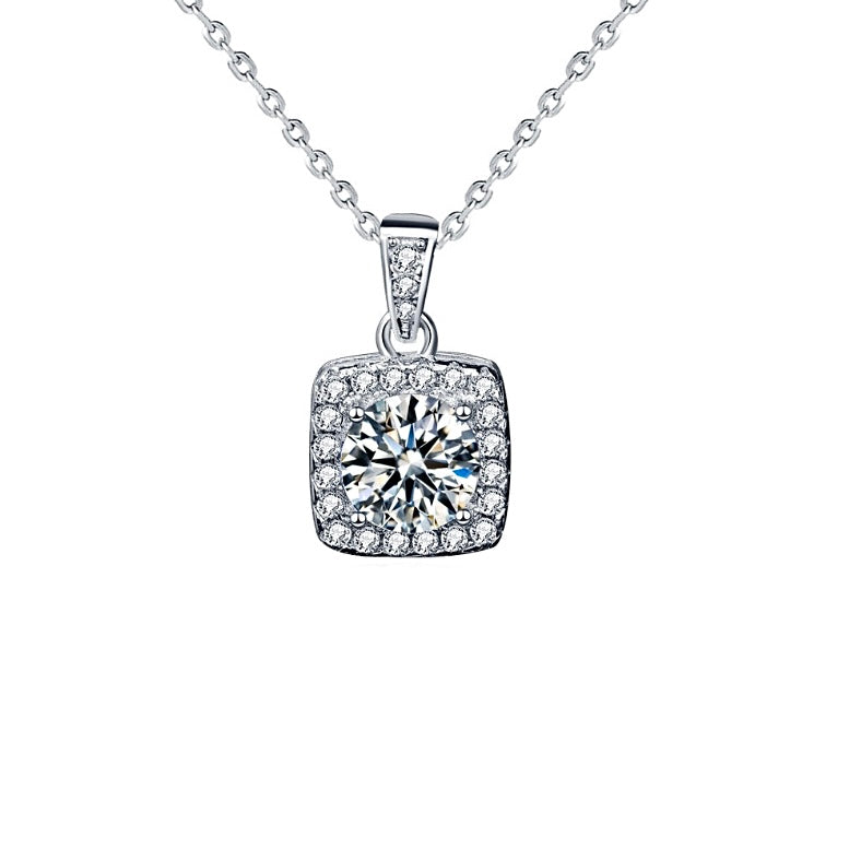 1.0 Sterling Silver Princess Cut Moissanite Necklace