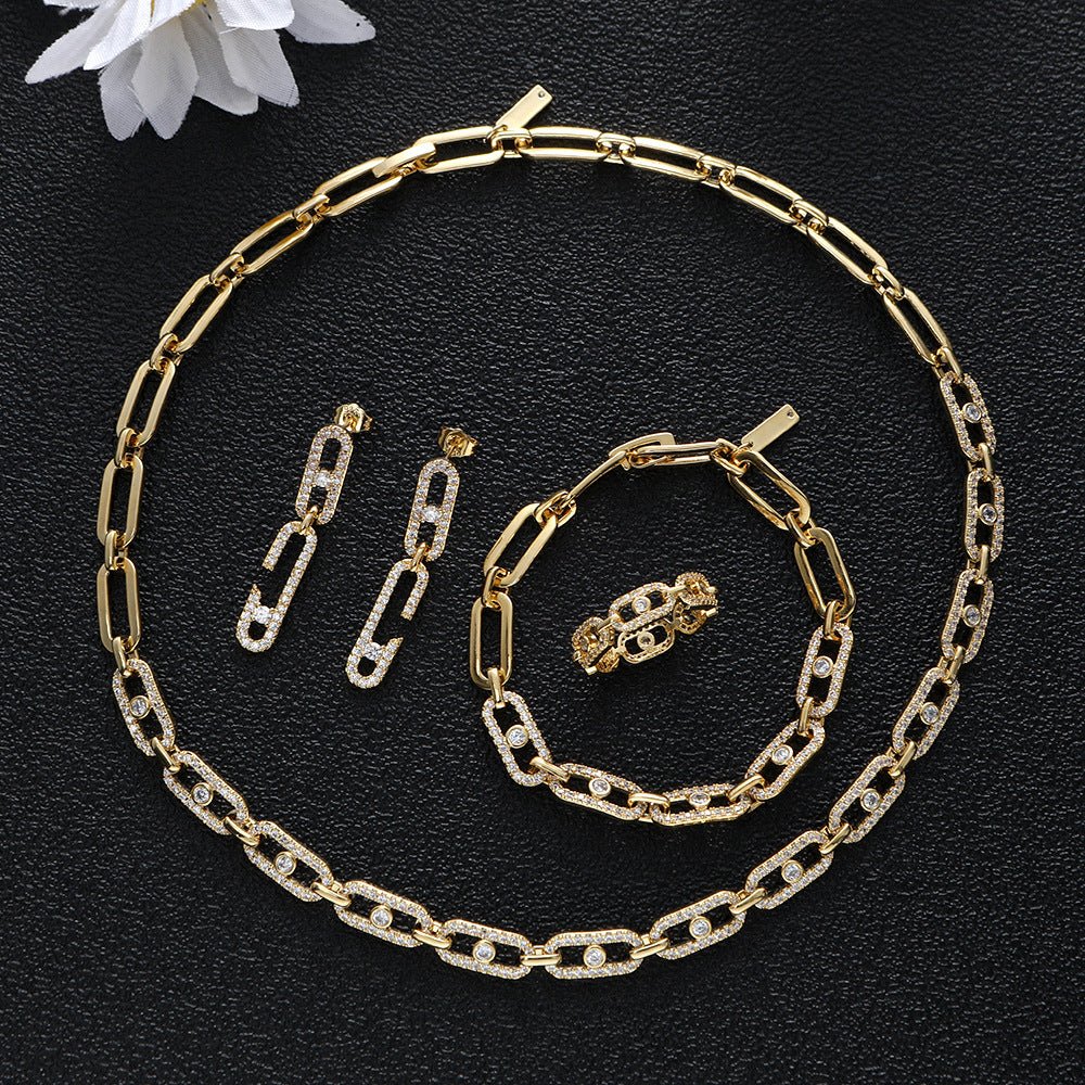 4pcs Paperclip Necklace Bracelet Ring Earrings set