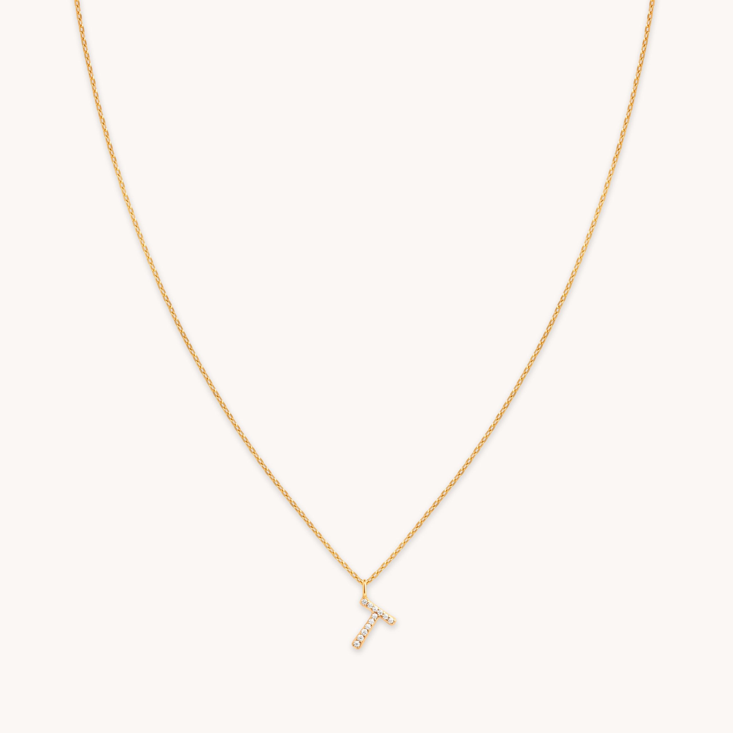 T Initial Pavé Pendant Necklace in Gold