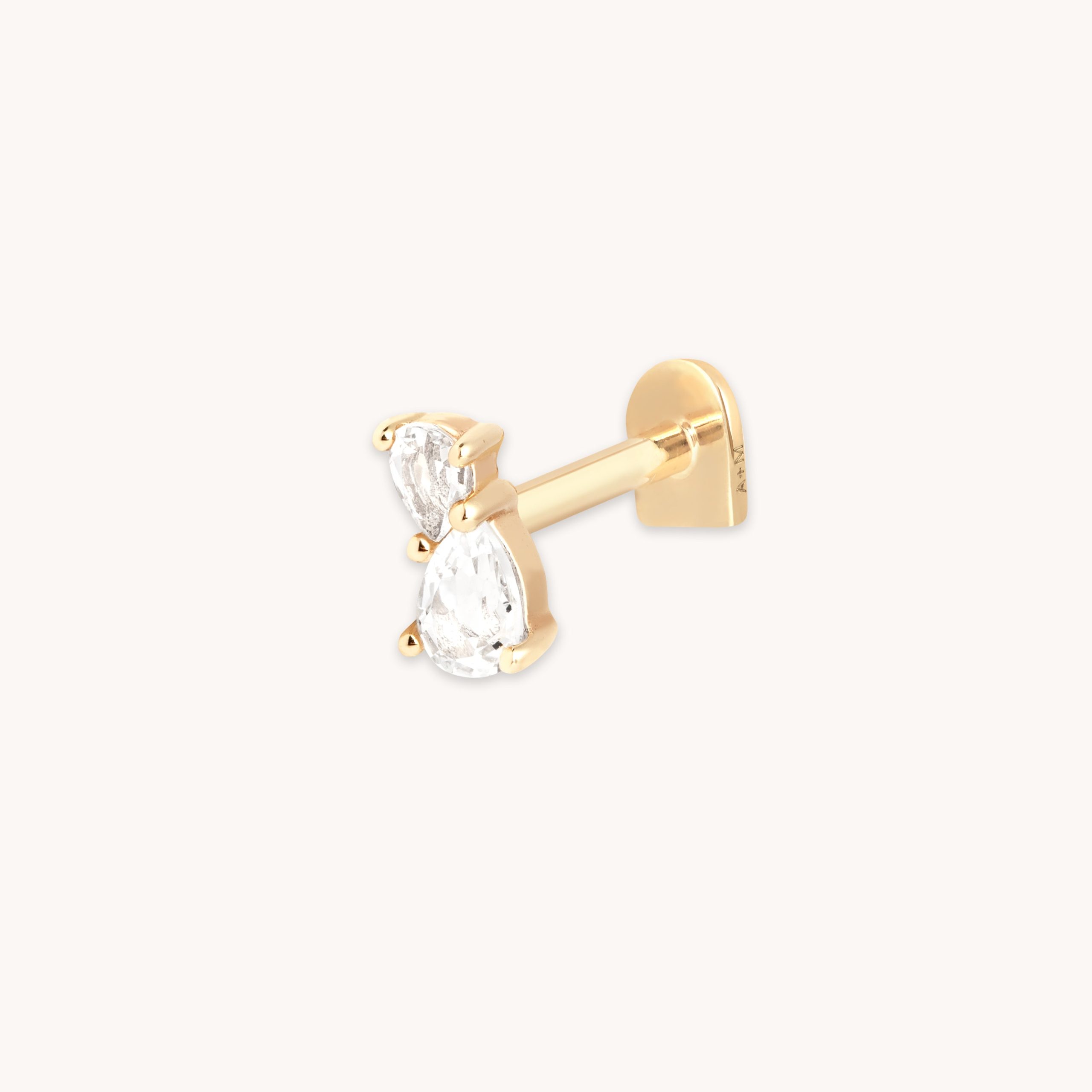 Topaz Pear Cluster Piercing Stud in Solid White Gold