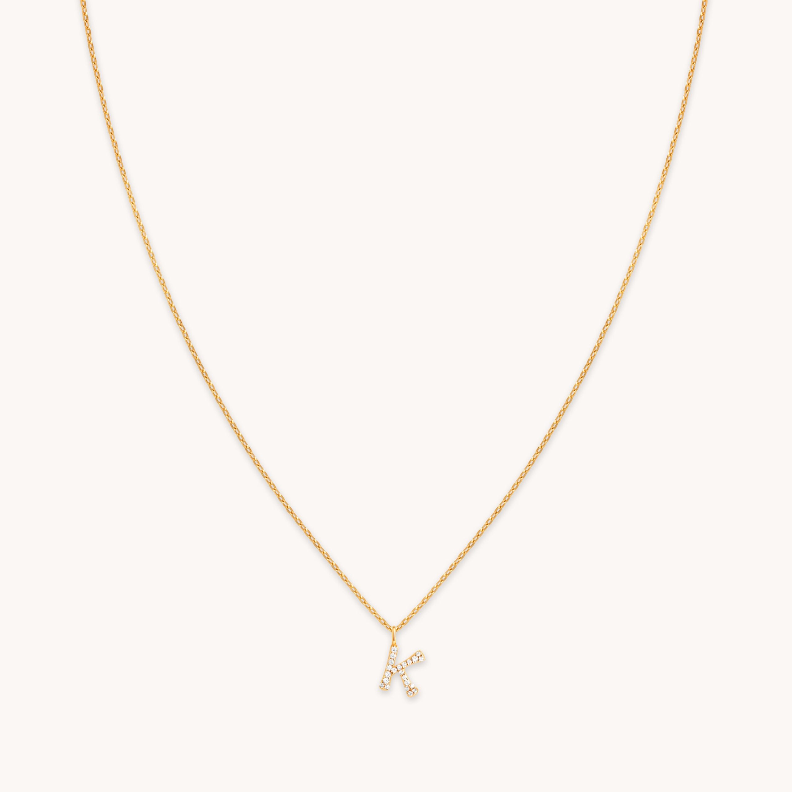 K Initial Pavé Pendant Necklace in Gold