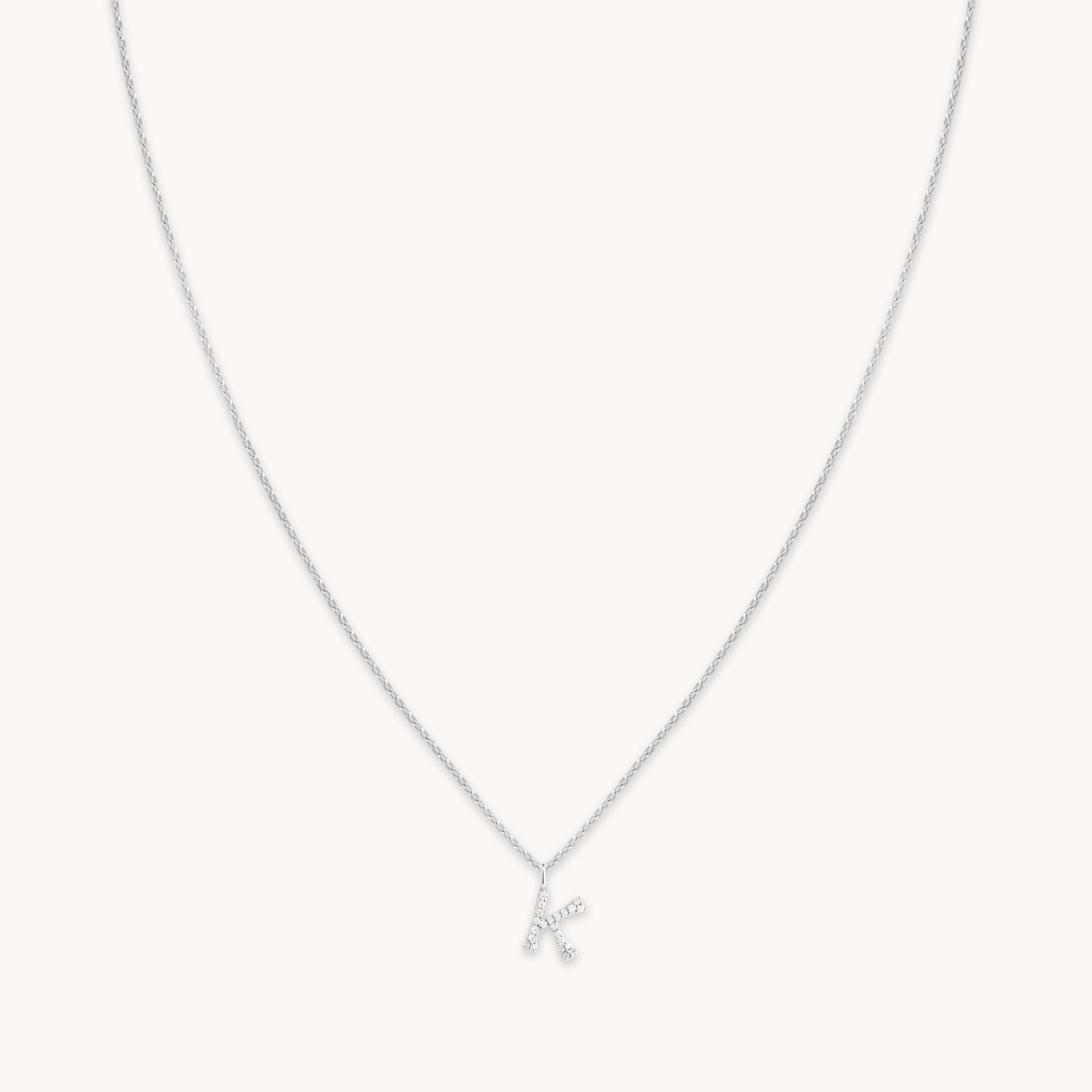 K Initial Pavé Pendant Necklace in Silver