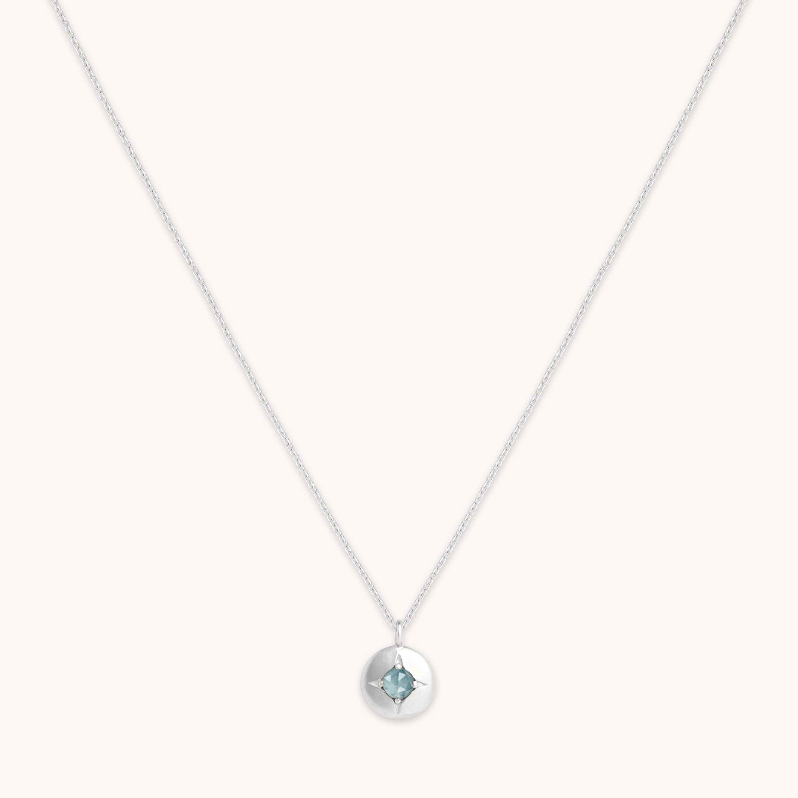 March Aquamarine Birthstone Necklace in Solid White Gold