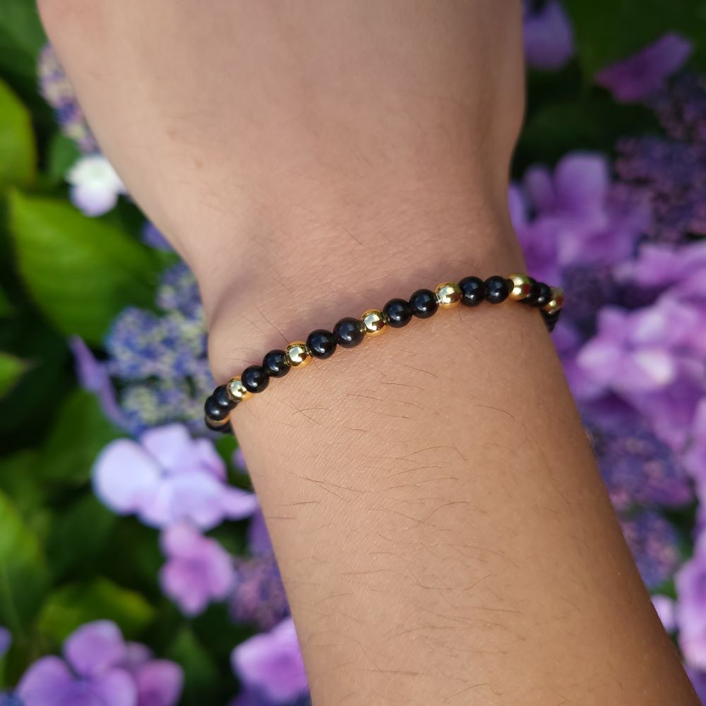 Black Obsidian Bracelet (Gold Accents) | Protection, Strength & Style