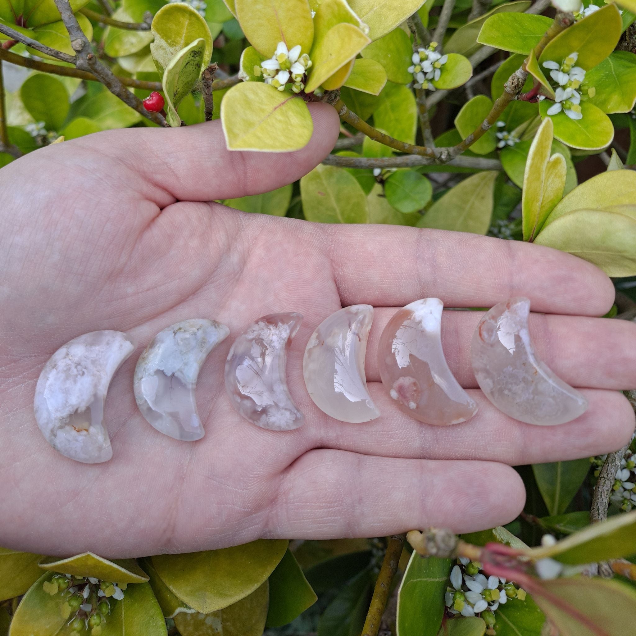 Flower Agate Crescent Moon Carving | Tranquillity, Peace & Harmony