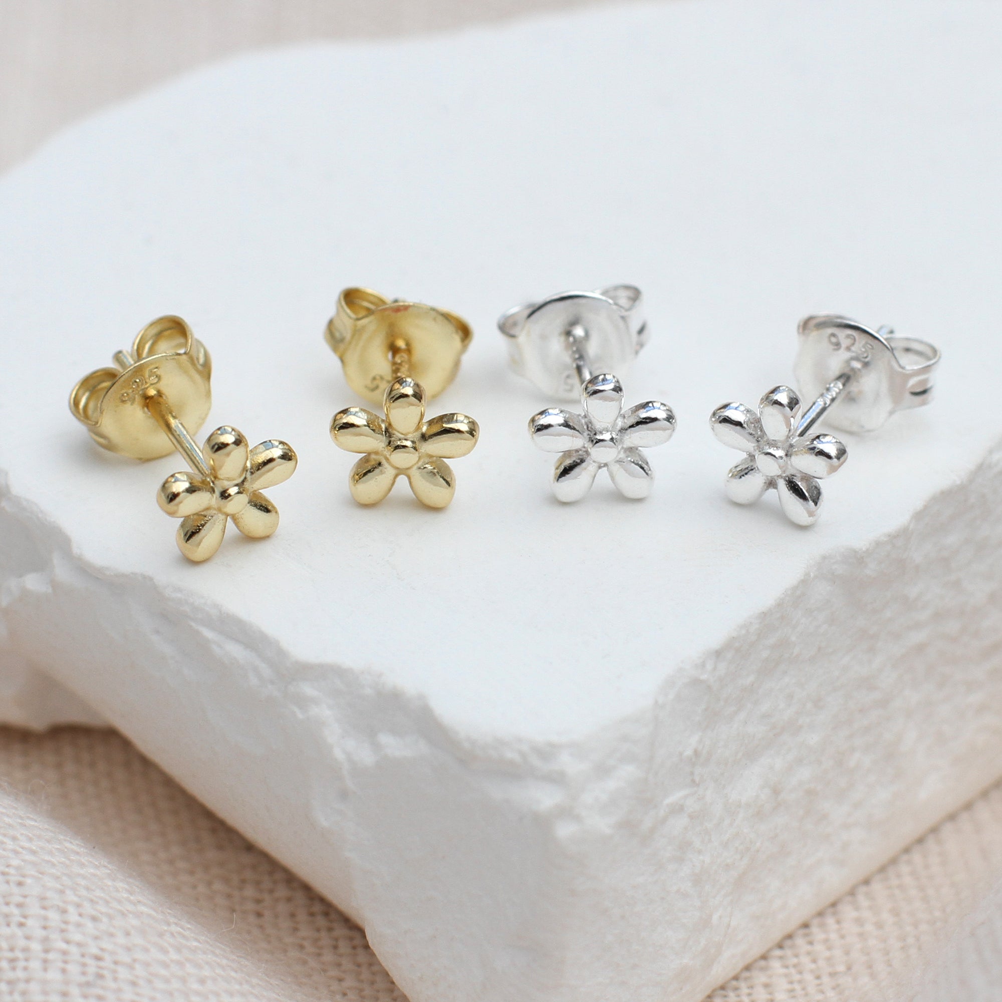 Sterling Silver Or Gold Plated Daisy Flower Stud Earrings