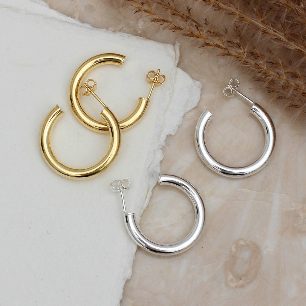 Sterling Silver or Gold Plated Daisy Hoop Earrings