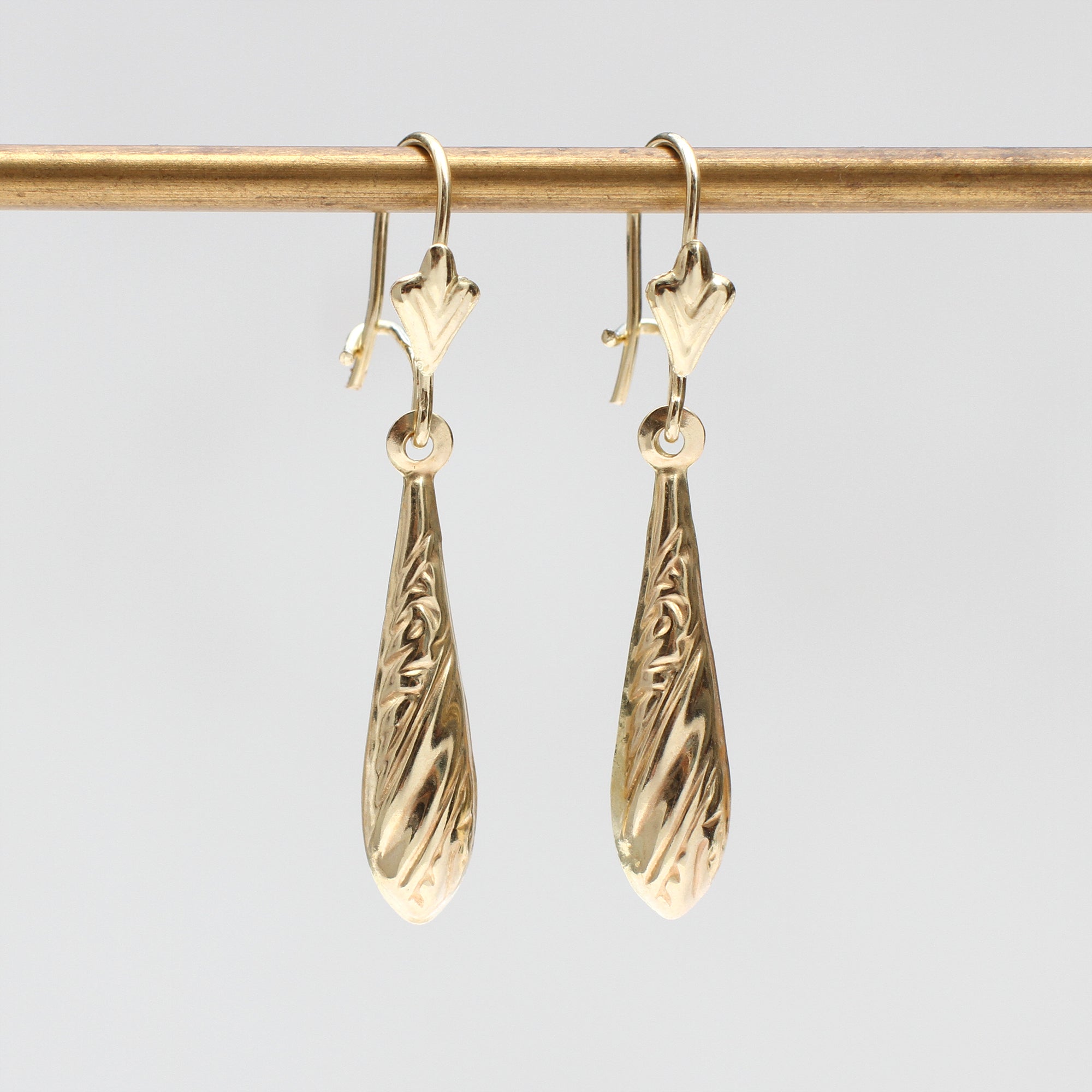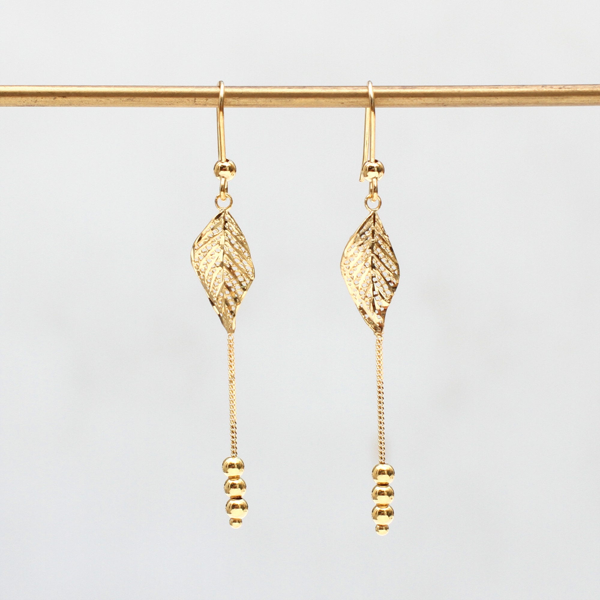 9ct Yellow Gold Diamond Cut Leaf and Chain Drop Earrings