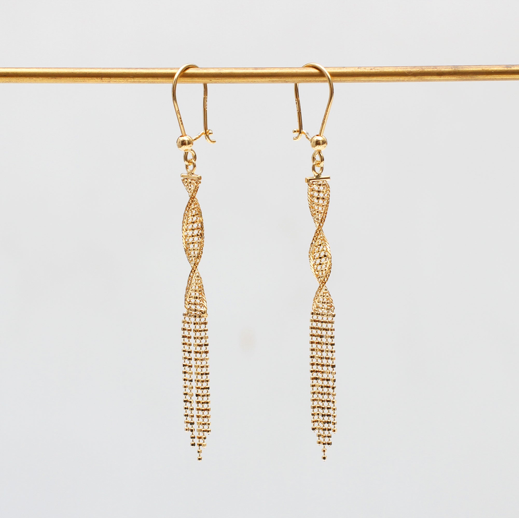 9ct Yellow Gold Diamond Cut Ball Twist Tassel Drop Earrings