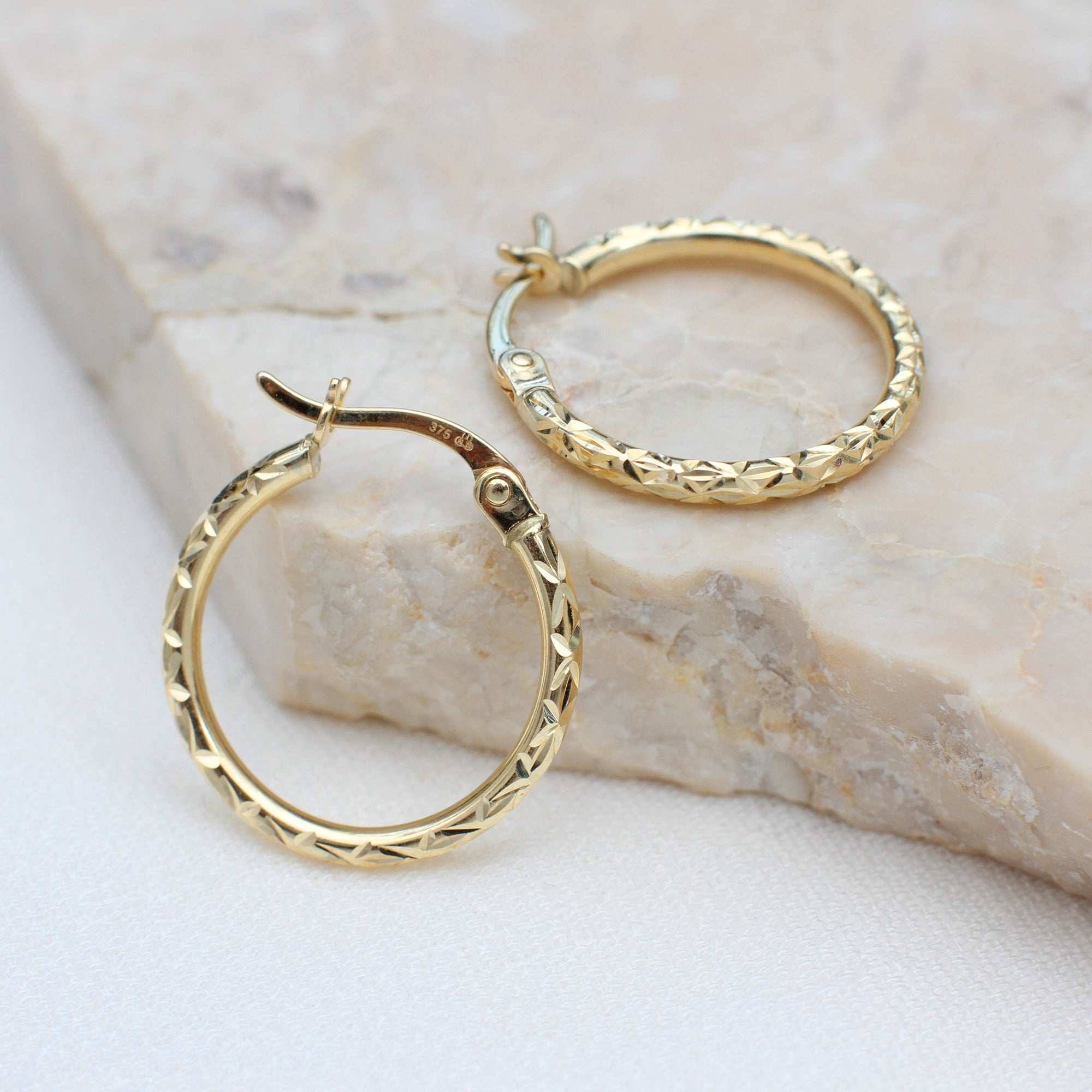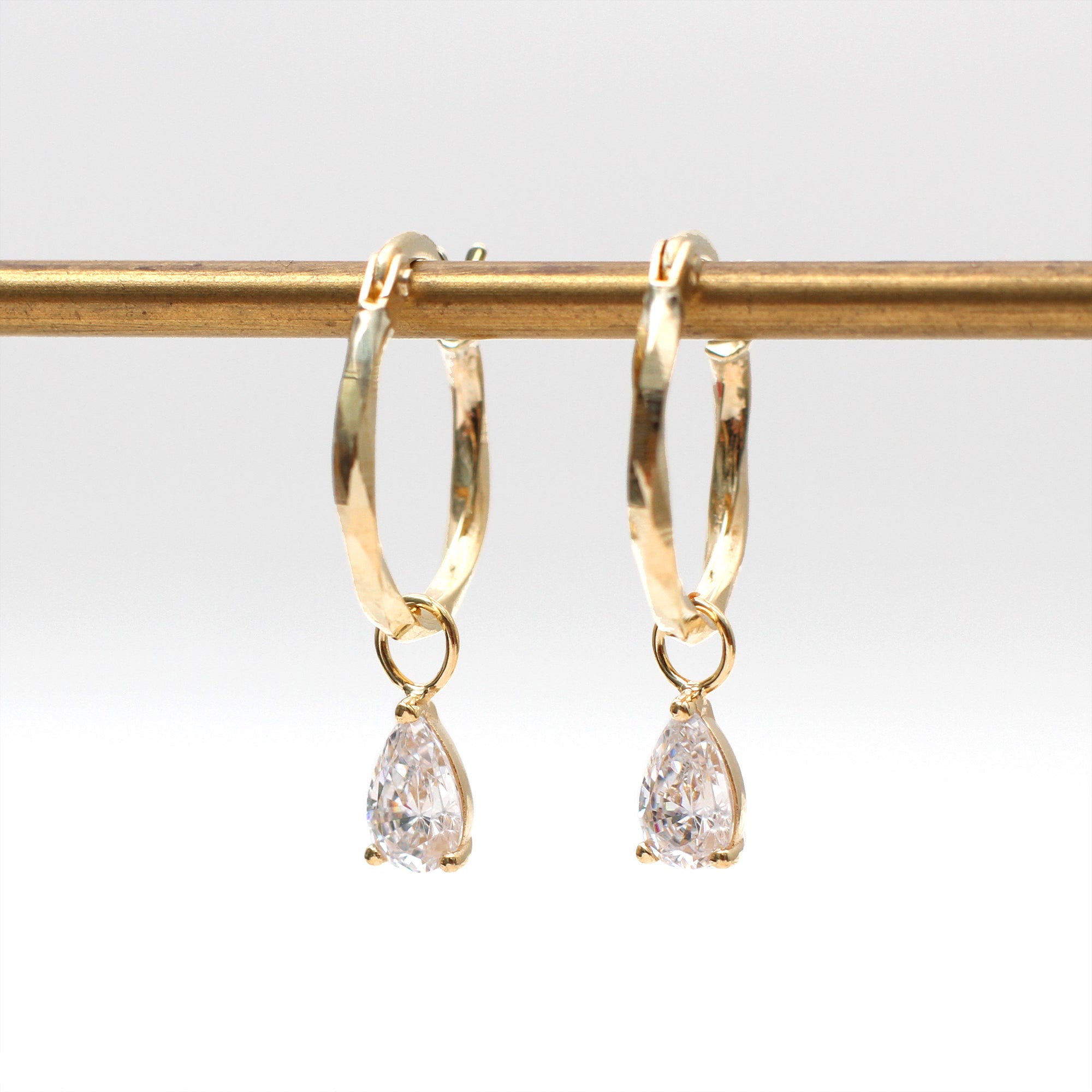 9ct Yellow Gold Diamond Cut Pear Cz Creole Hoop Earrings