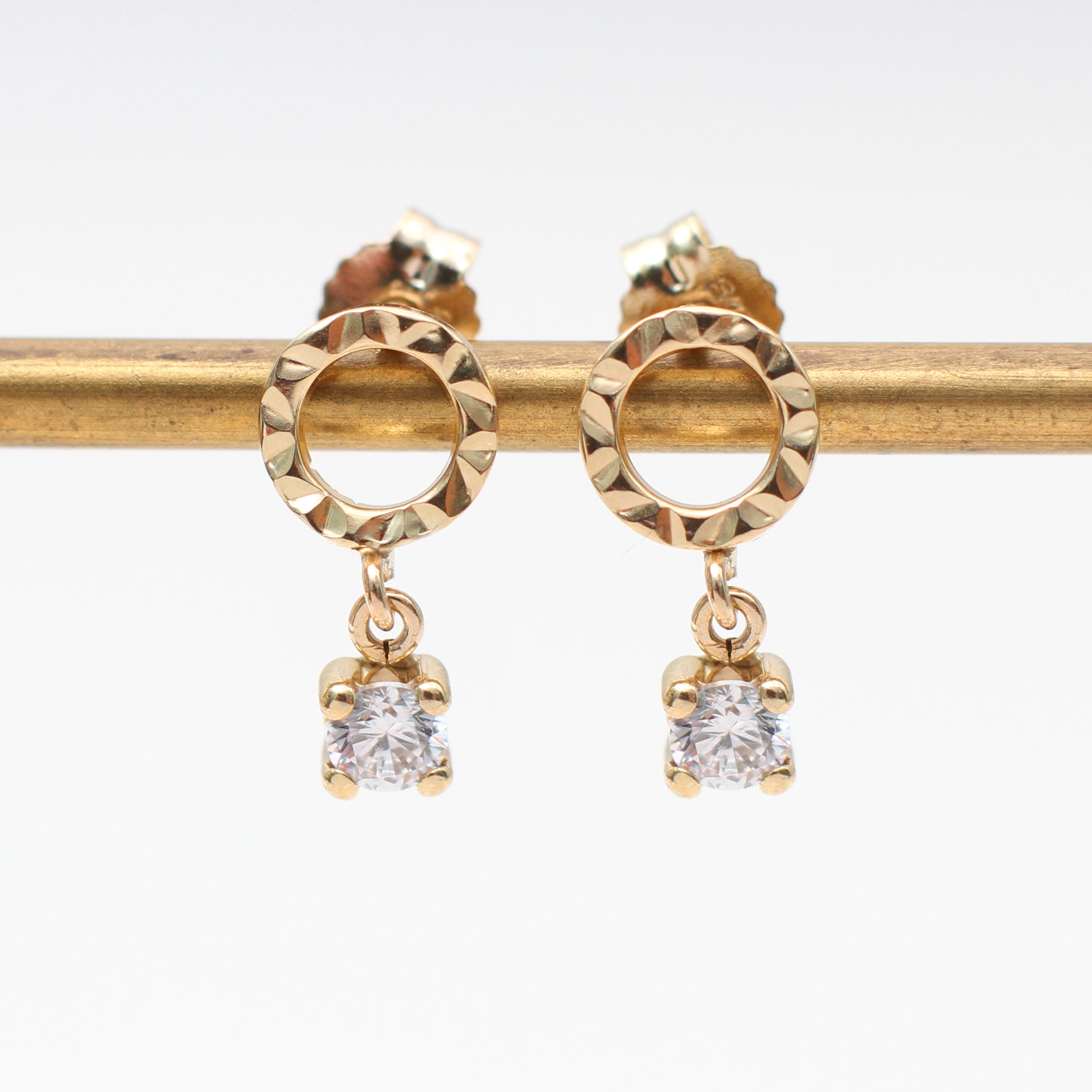 9ct Yellow Gold Diamond Cut Cz Circle Drop Stud Earrings