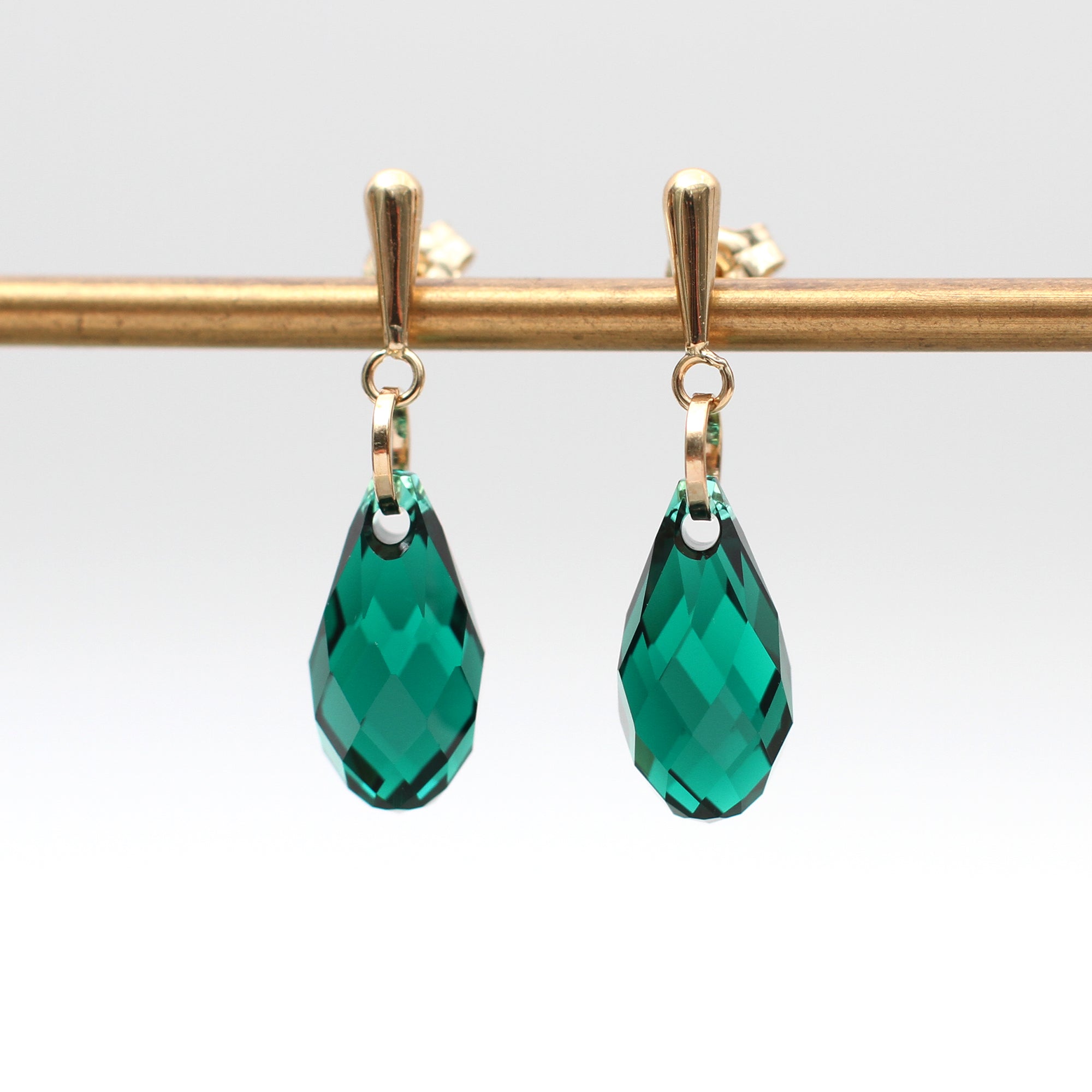 9ct Yellow Gold Green Swarovski Crystal Teardrop Earrings