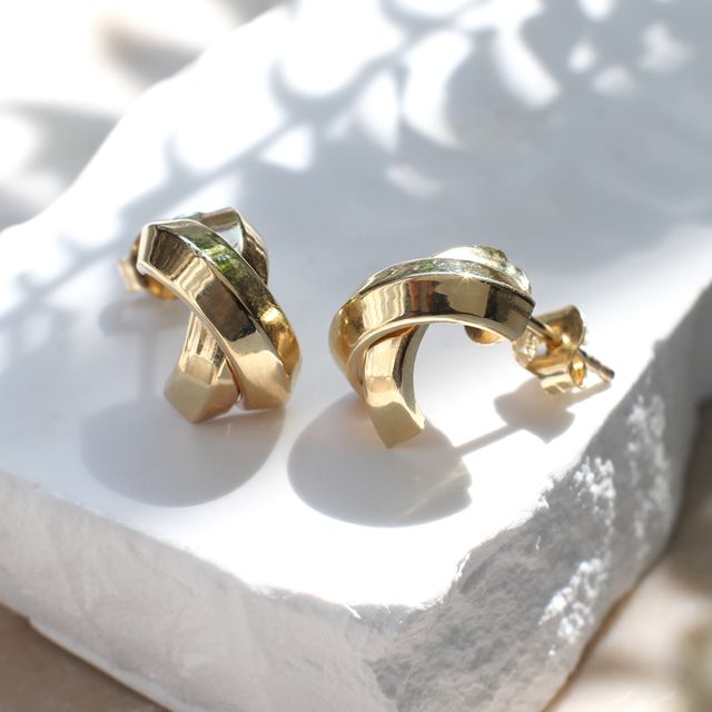 9ct Yellow Gold Kiss Huggie Stud Earrings