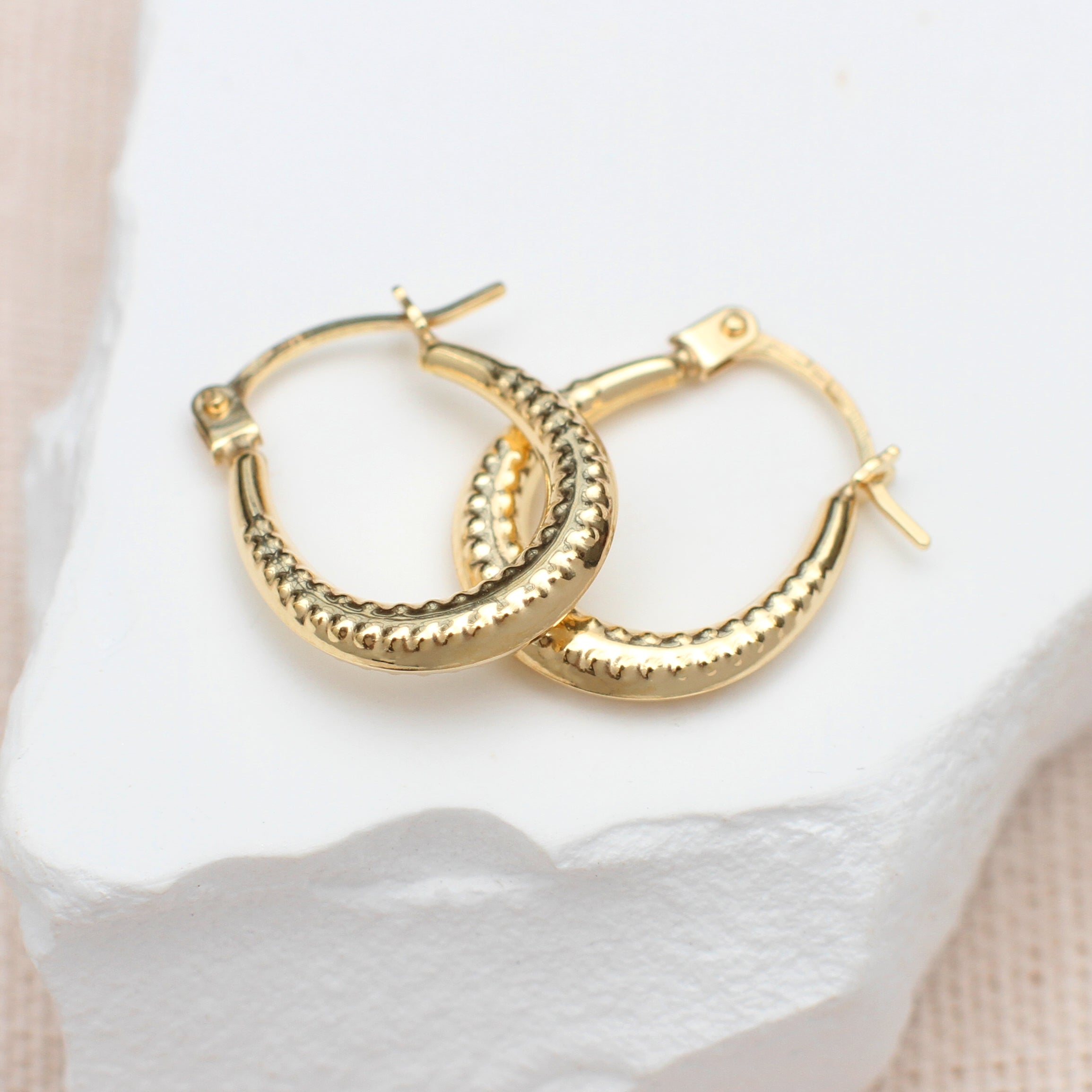 9ct Yellow Gold Mini Textured Creole Hoop Earrings