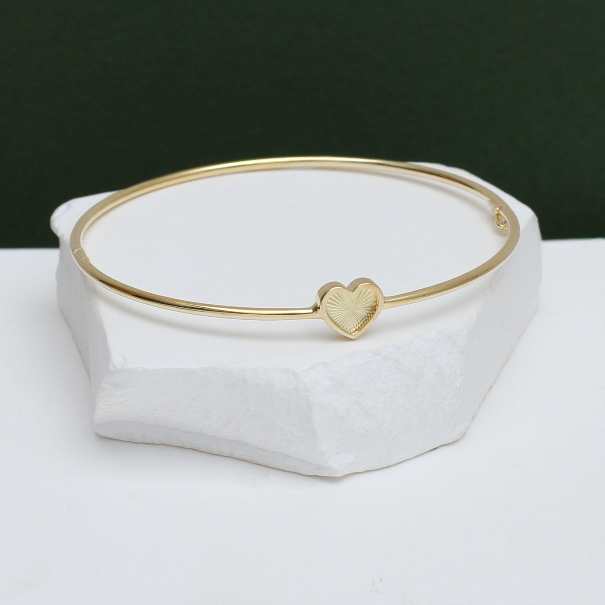 9ct Yellow Gold Rainbow Heart Bangle
