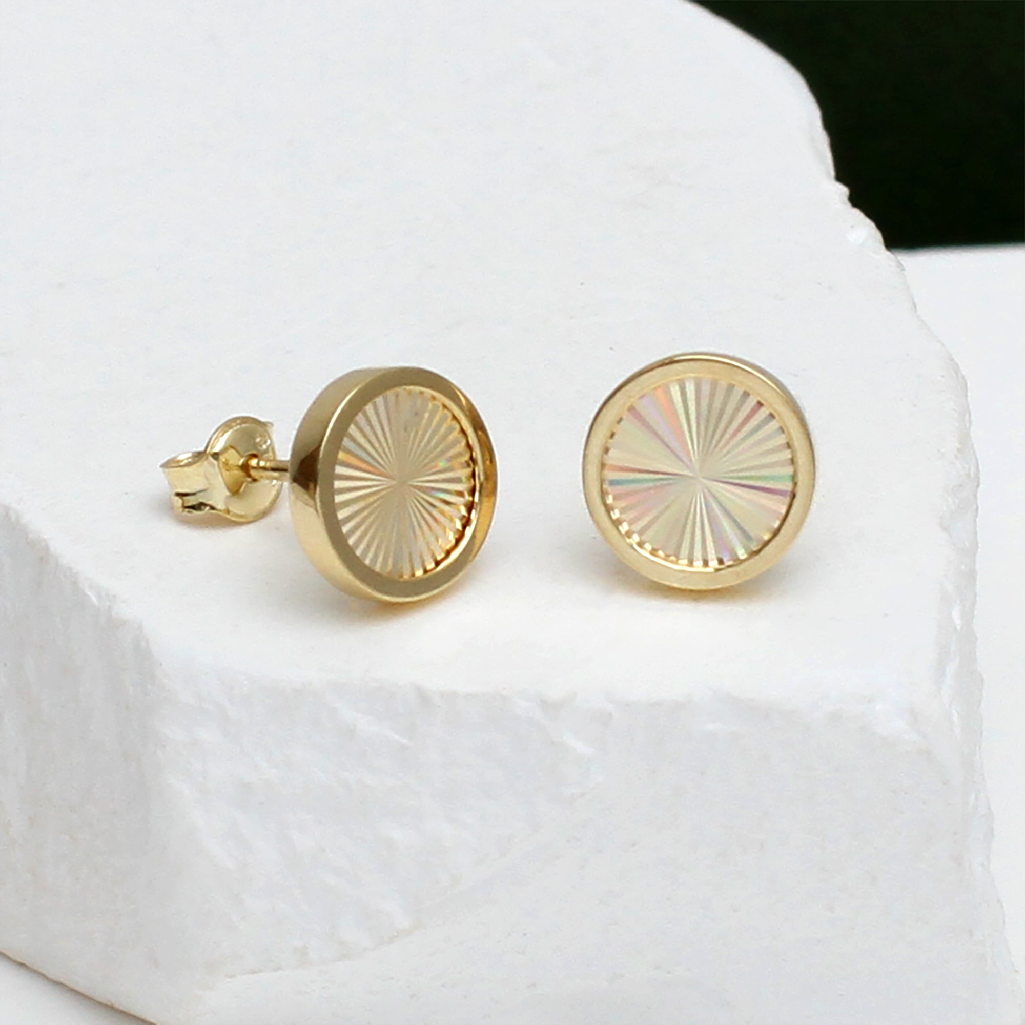 9ct Yellow Gold Rainbow Circle Stud Earrings