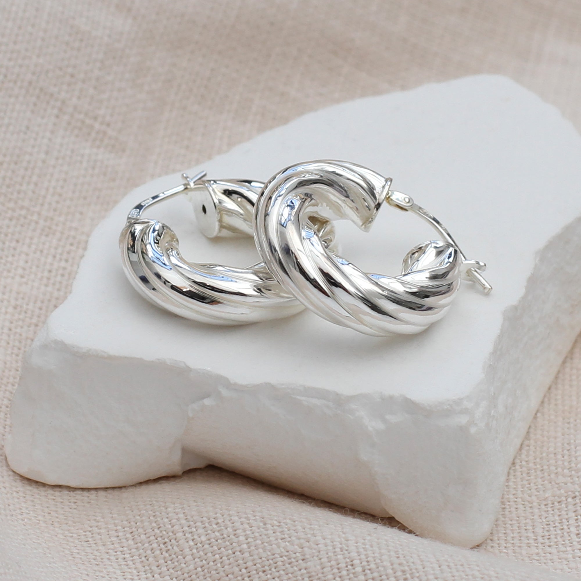 Gold Plated Or Silver Chunky Twisted Hoop Earrings
