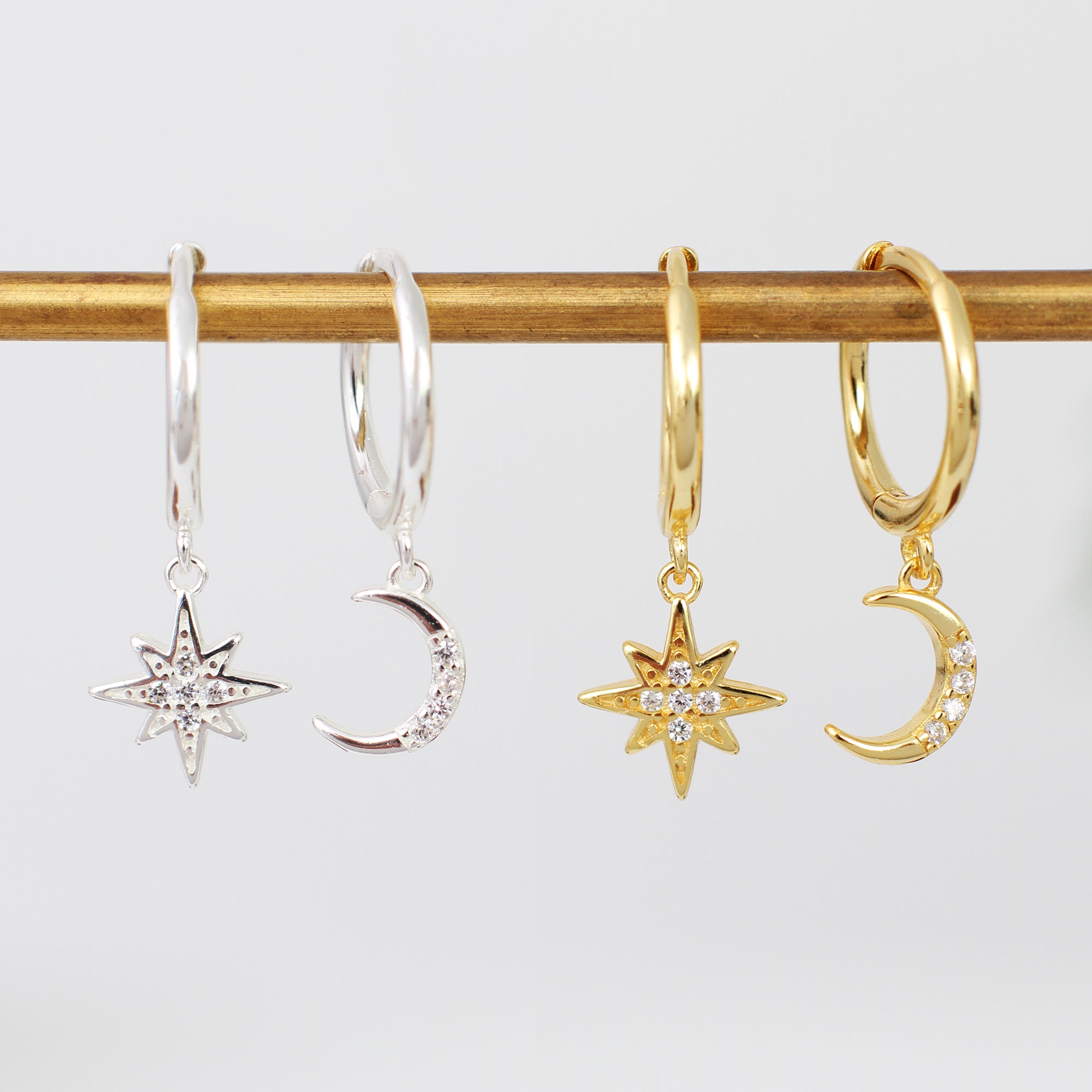 Gold Plated or Silver Star & Moon Hoop Earrings