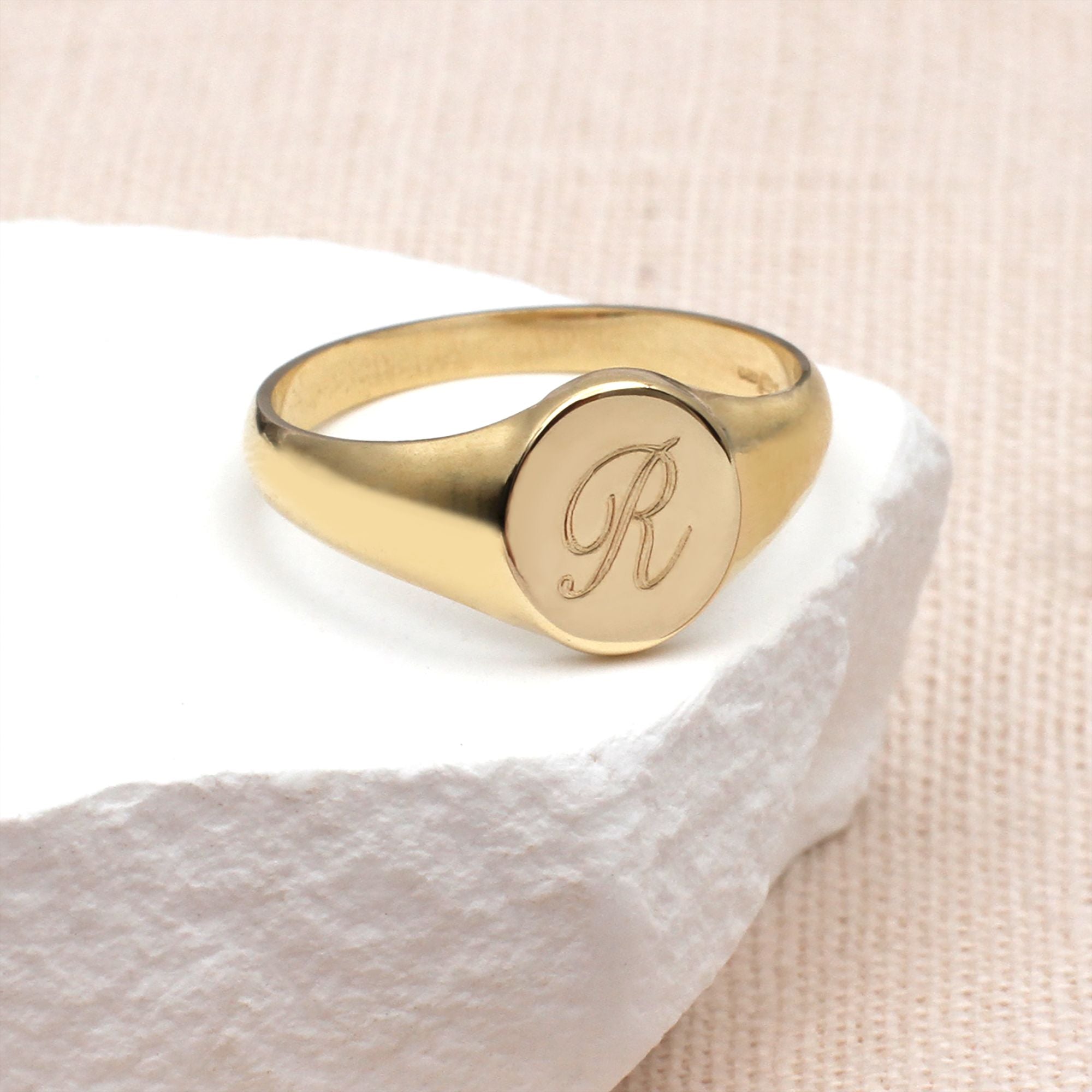 Ladies 9ct Yellow Gold Personalised Round Signet Ring