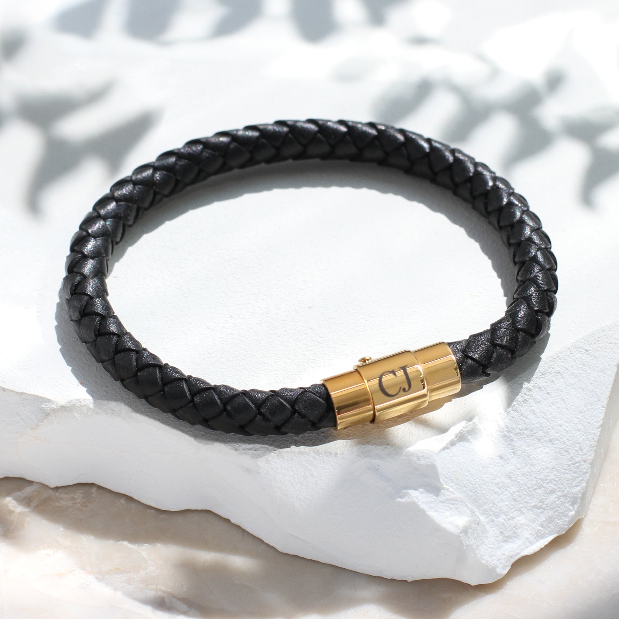 Men’s Personalised Gold Clasp Plaited Leather Bracelet