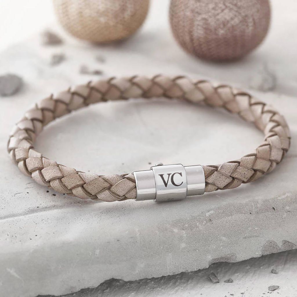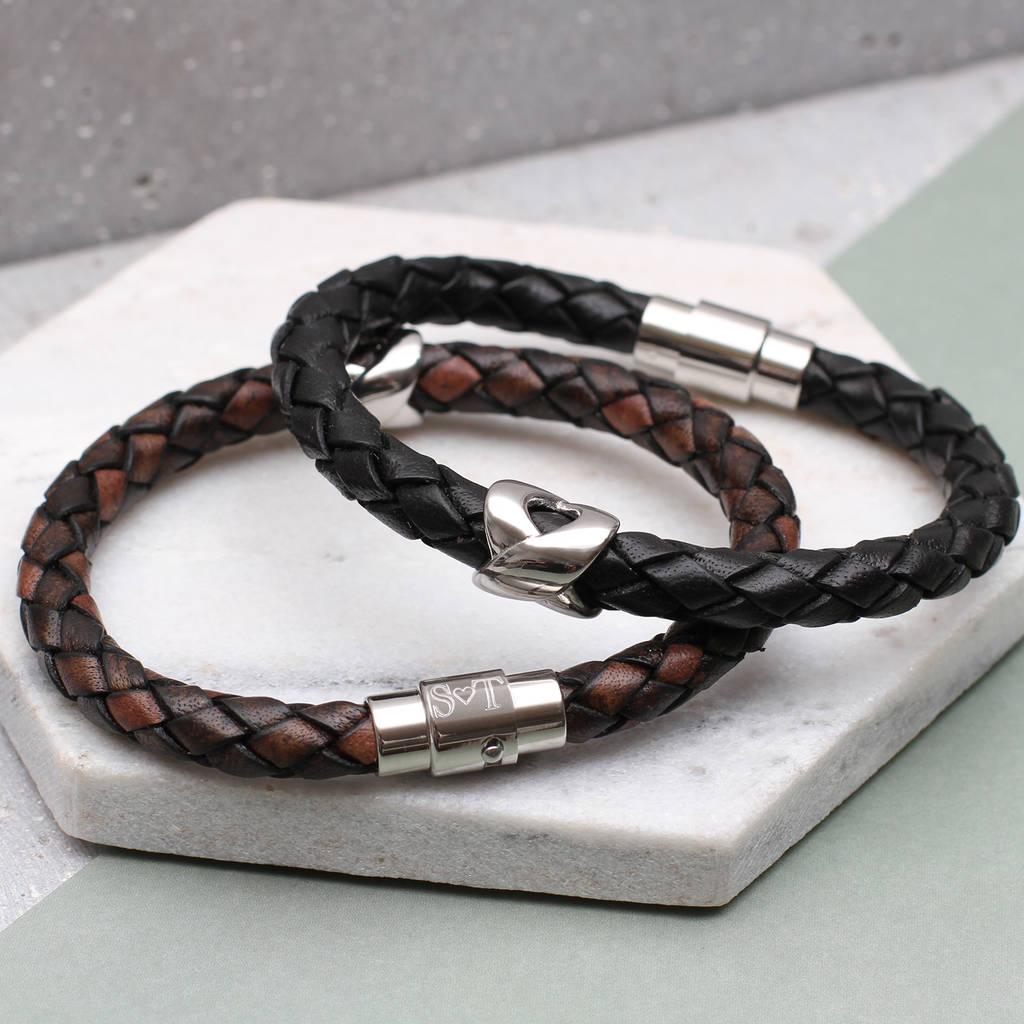 Men’s Personalised Clasp Plaited Leather Bracelet