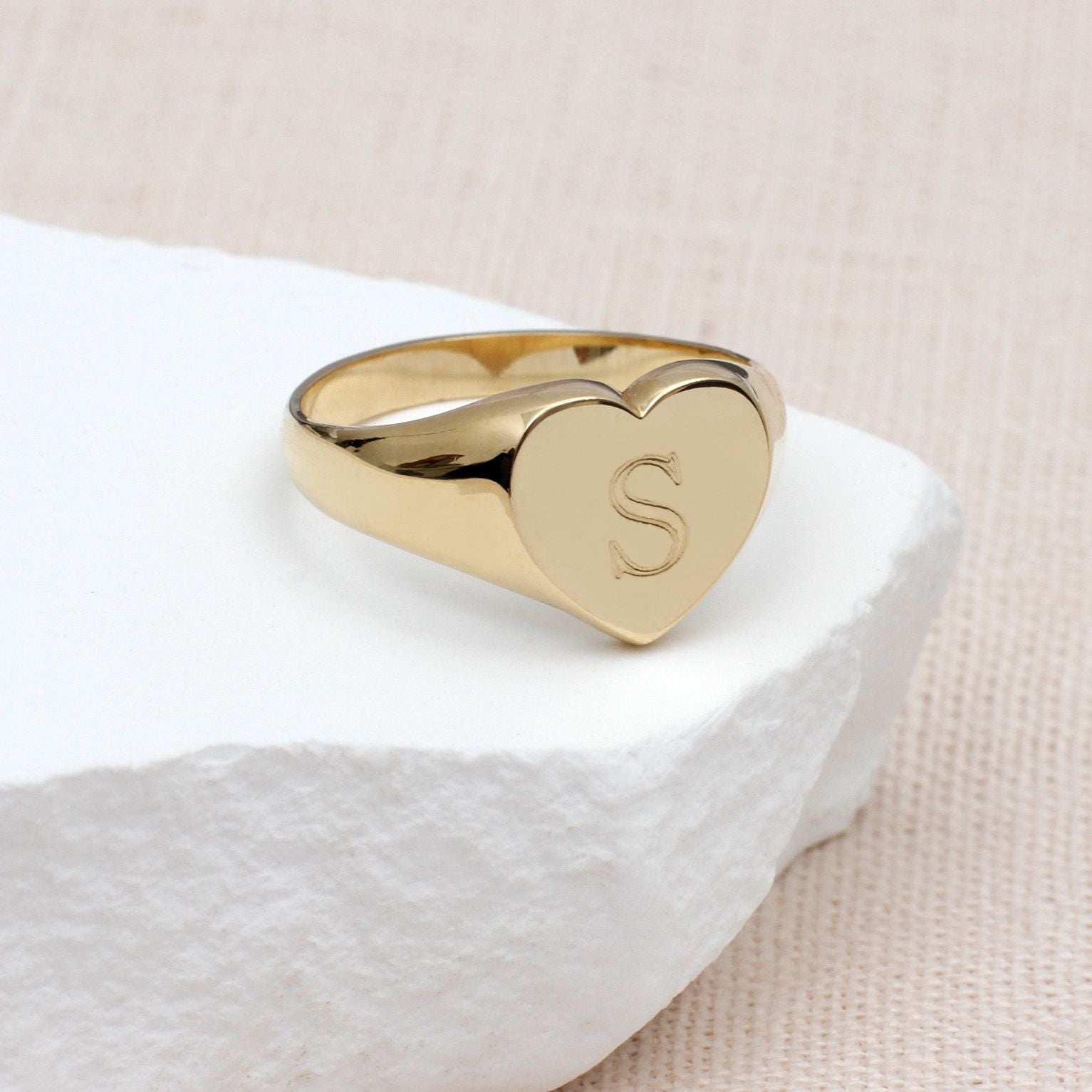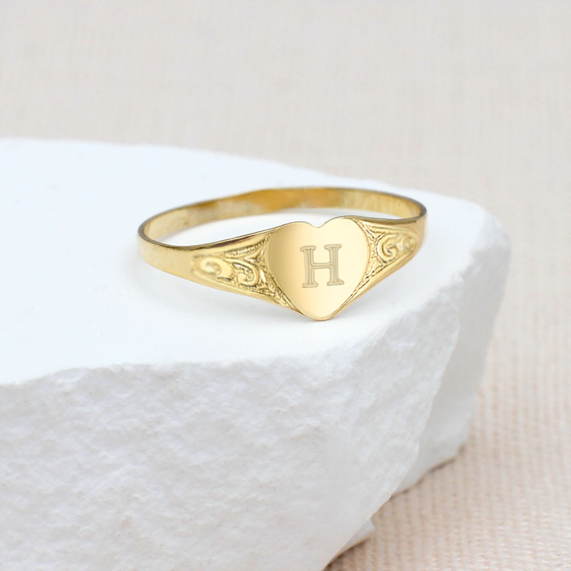 Personalised 9ct Yellow Gold Heart Signet Ring