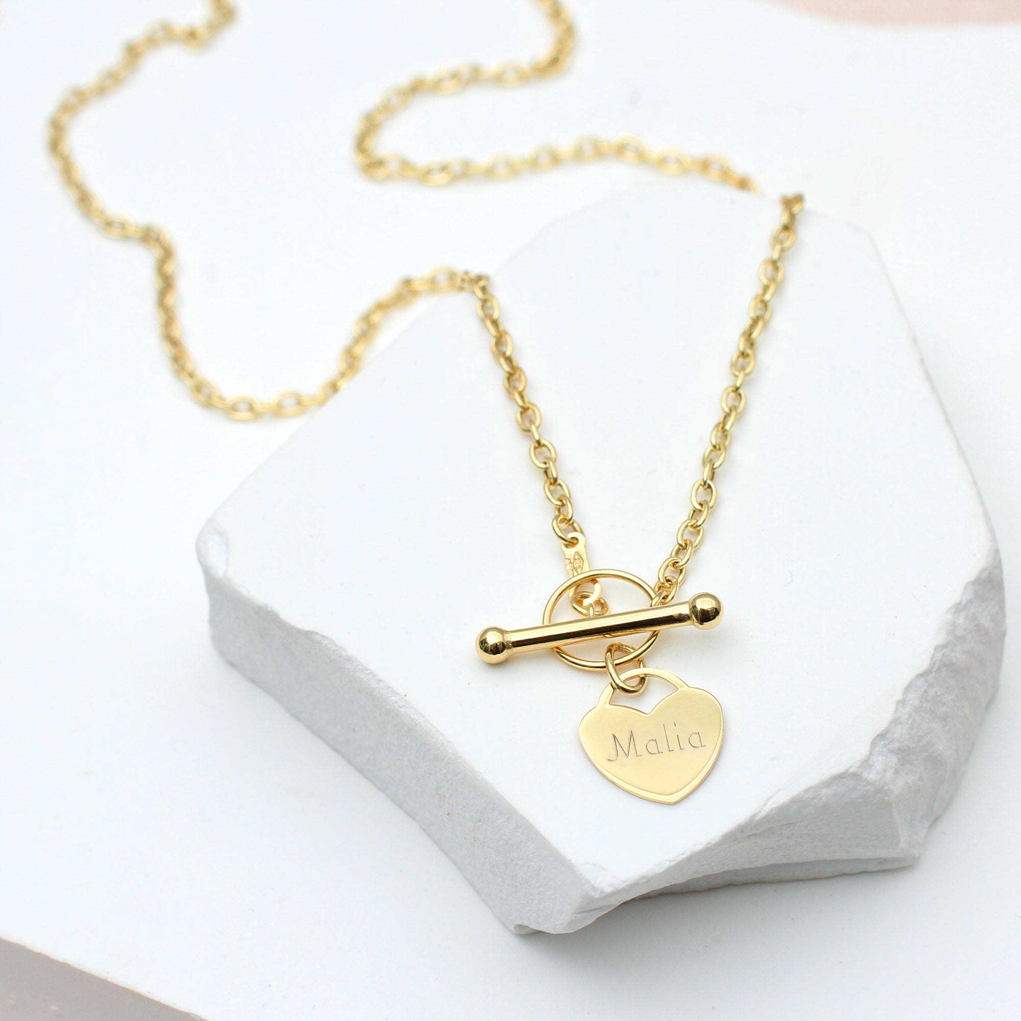 Personalised 9ct Yellow Gold Heart Charm T-Bar Necklace