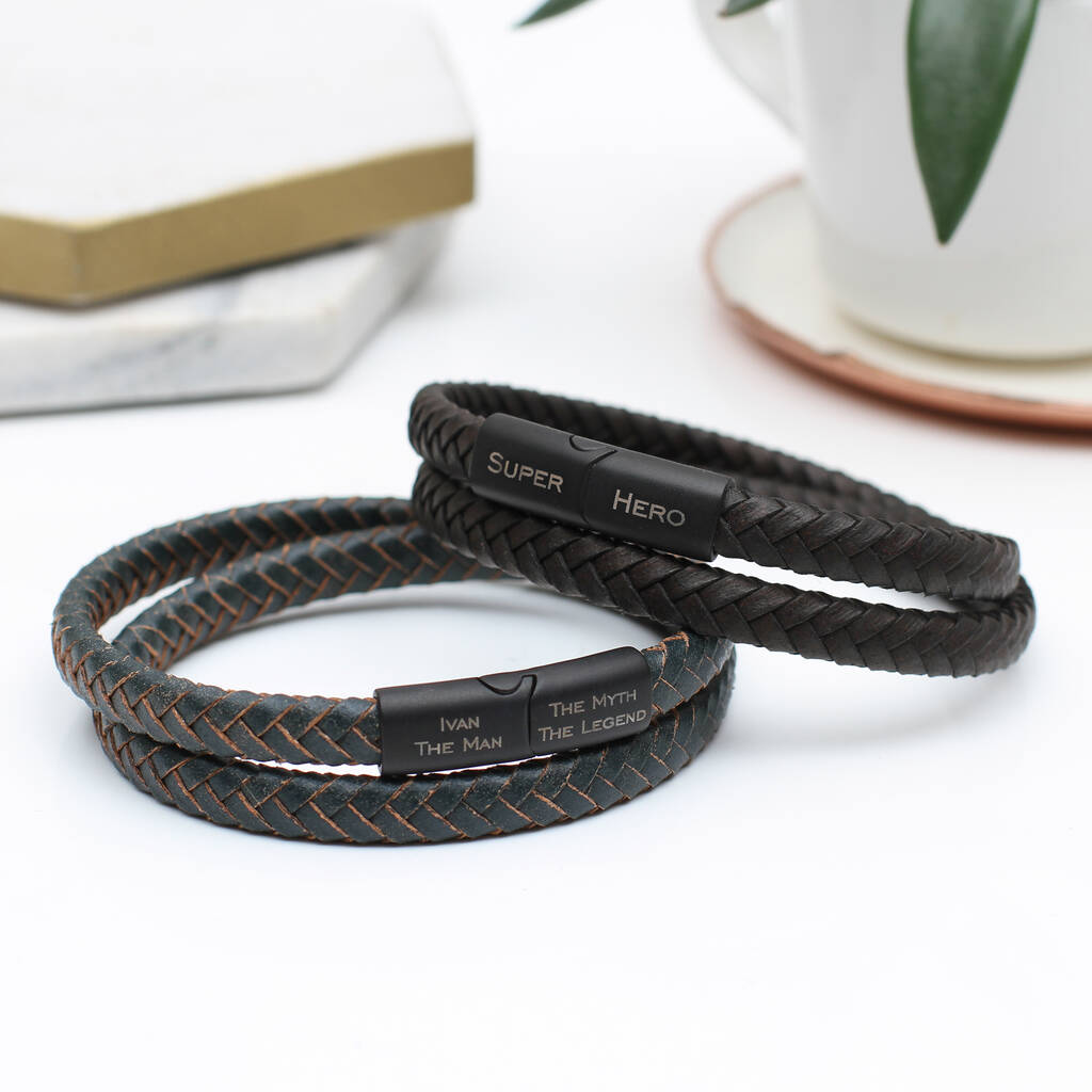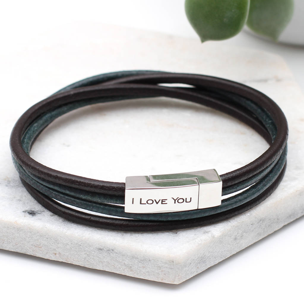 Personalised Men’s Ruthenium Clasp Wrap Bracelet