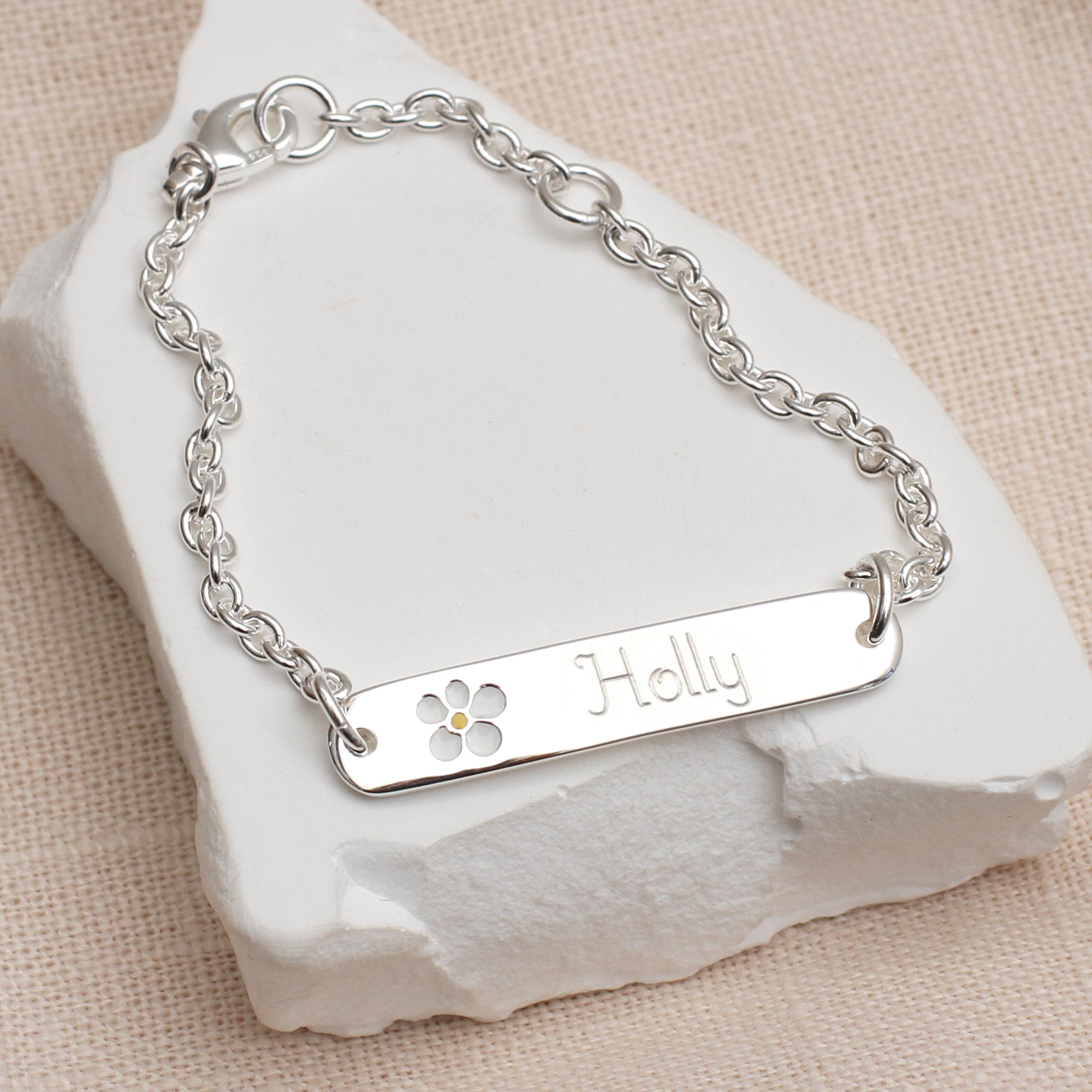 Personalised Sterling Silver Christening Bracelet With Birthstone Teddy