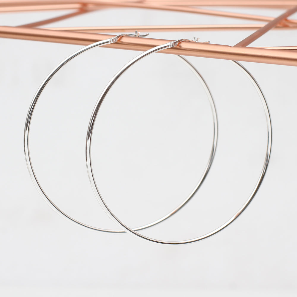 Silver Hinged Extra Large Hoop Earrings