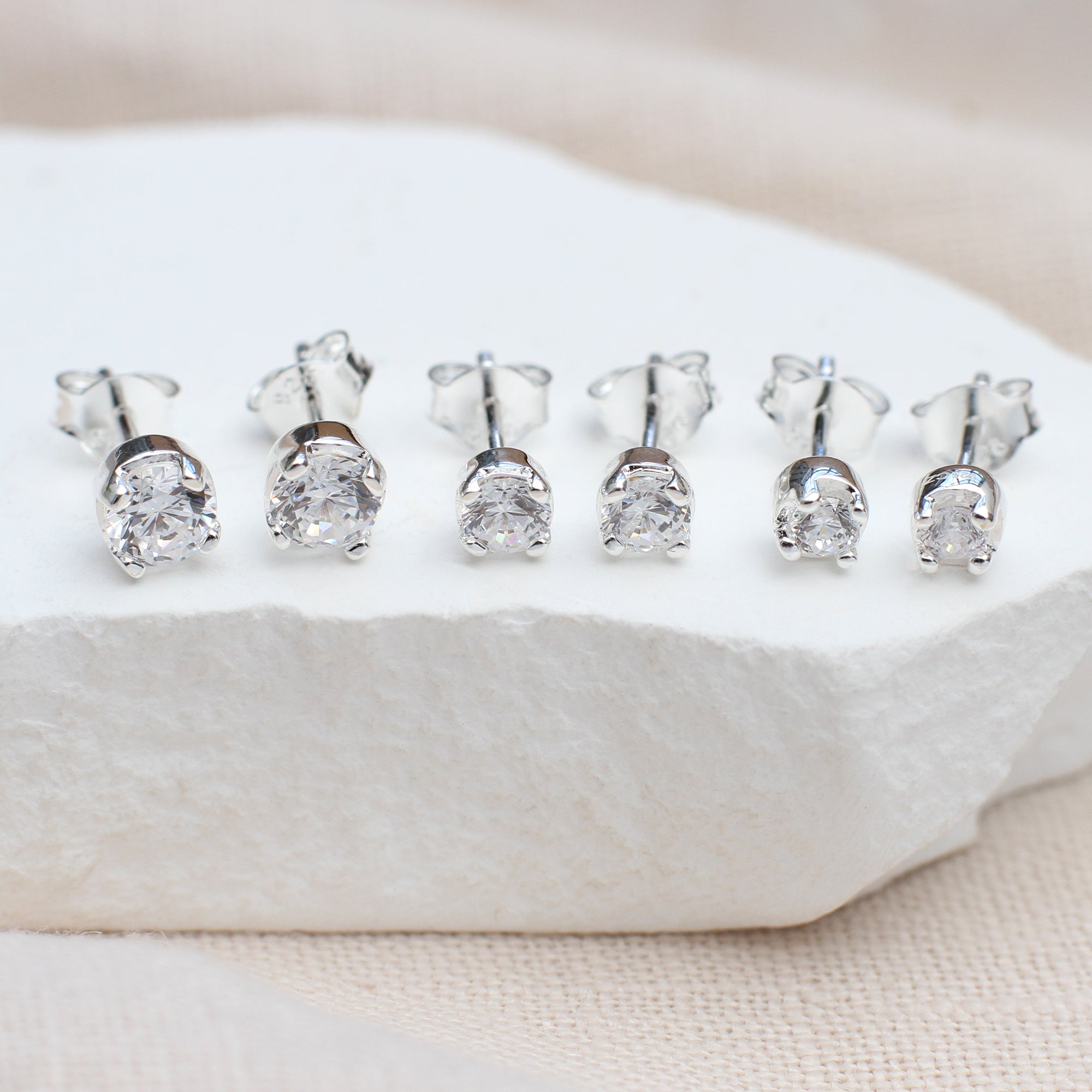 Set Of Three Tiny Sterling Silver Stud Earrings
