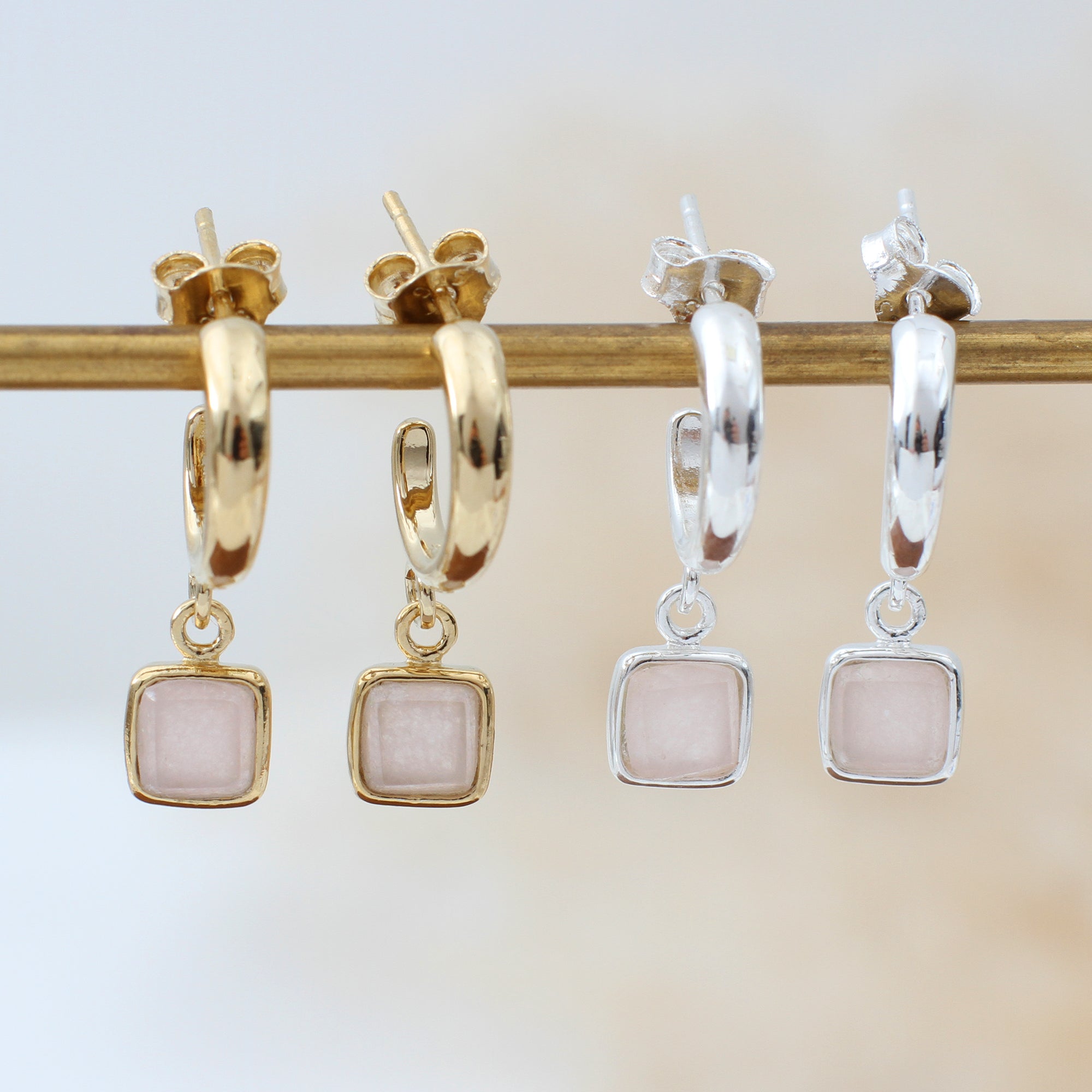 Semi Precious Stone Half Hoop Earrings