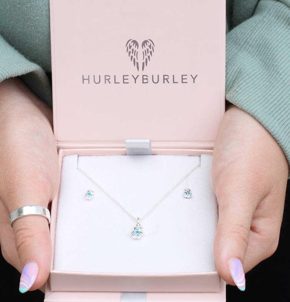 Silver Birthstone Teddy Necklace & Earring Set