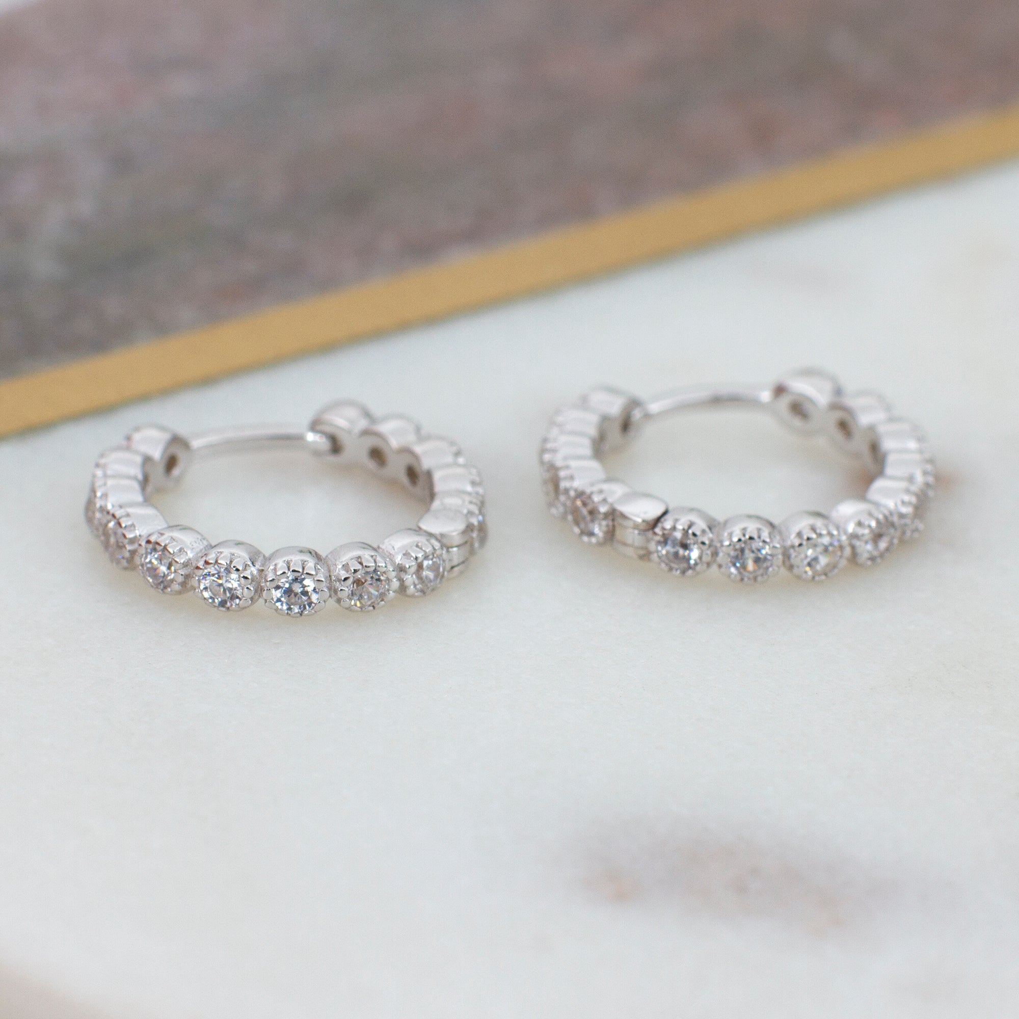 Sterling Silver & Crystal Tennis Milligrain Hoop Earrings