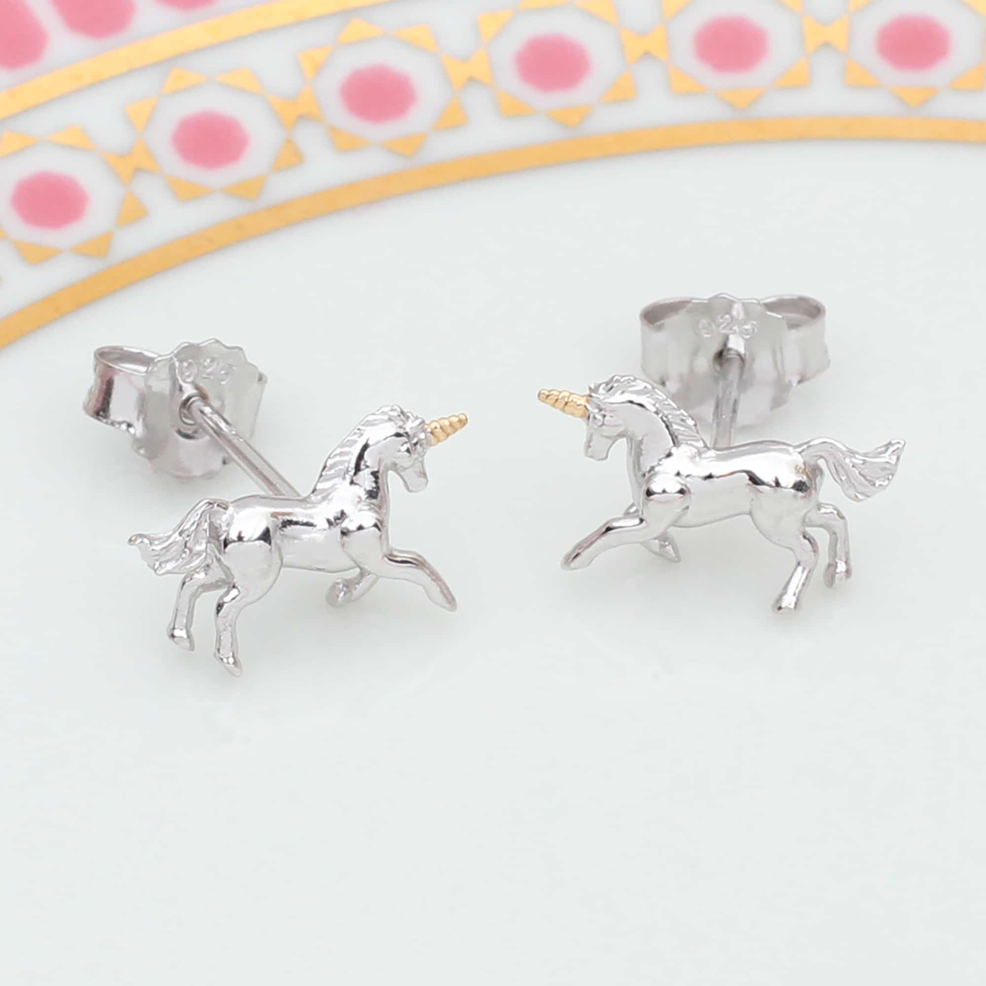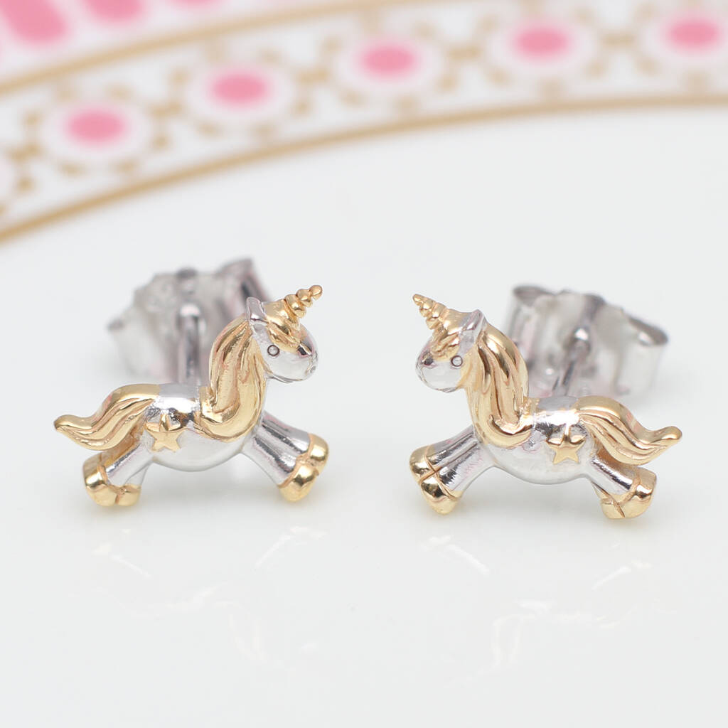Sterling Silver And 18ct Gold Plated Mini Unicorn Earrings