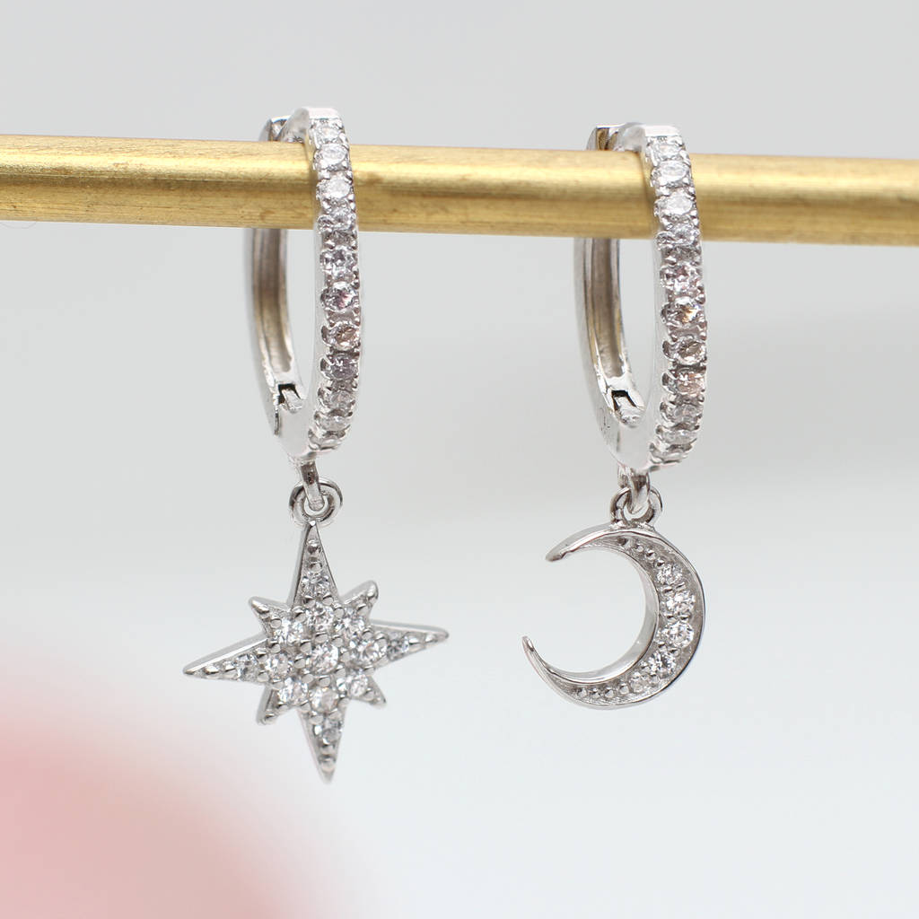 Sterling Silver & Crystal Celestial Huggie Earrings