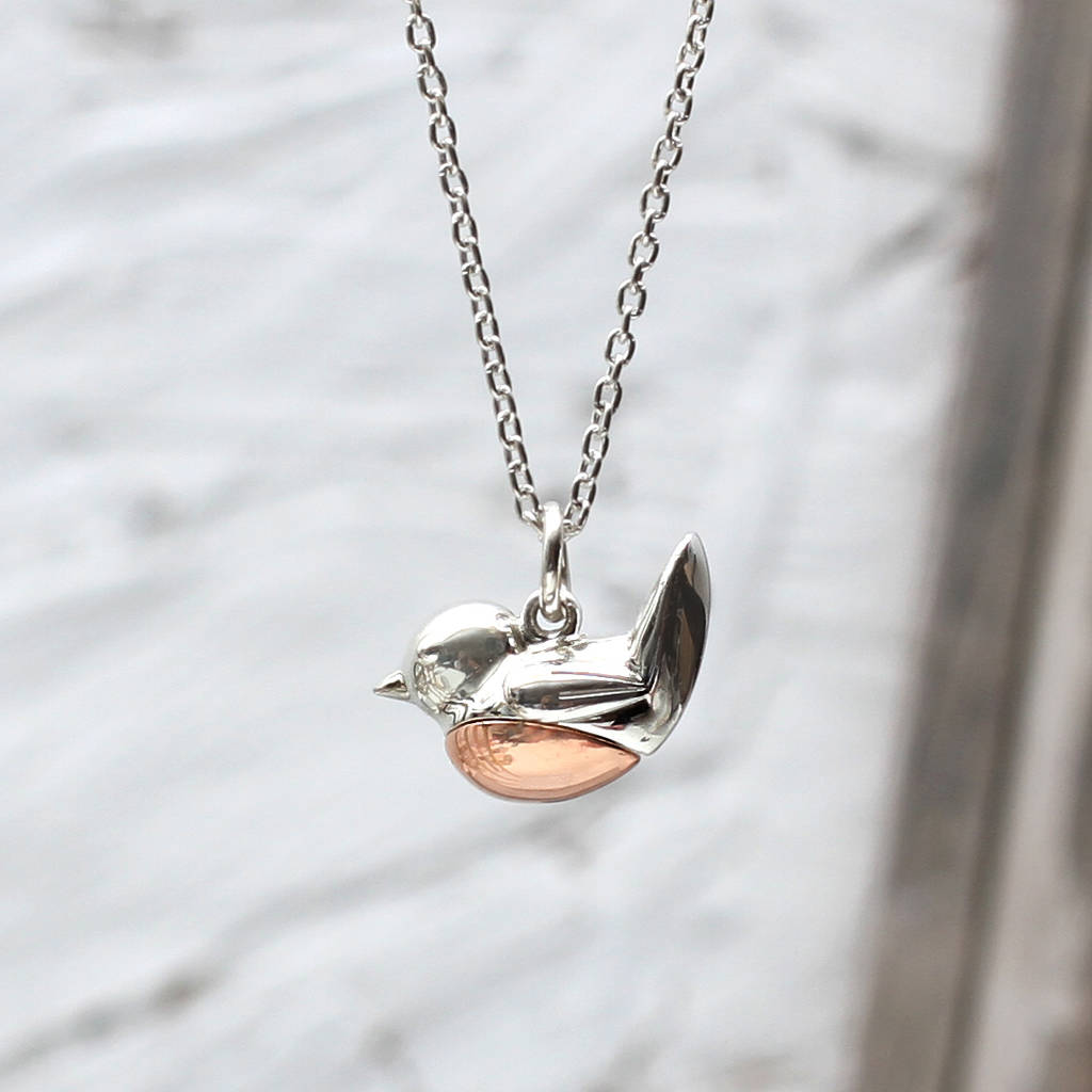 Sterling Silver & Rose Gold Plated Robin Redbreast Necklace