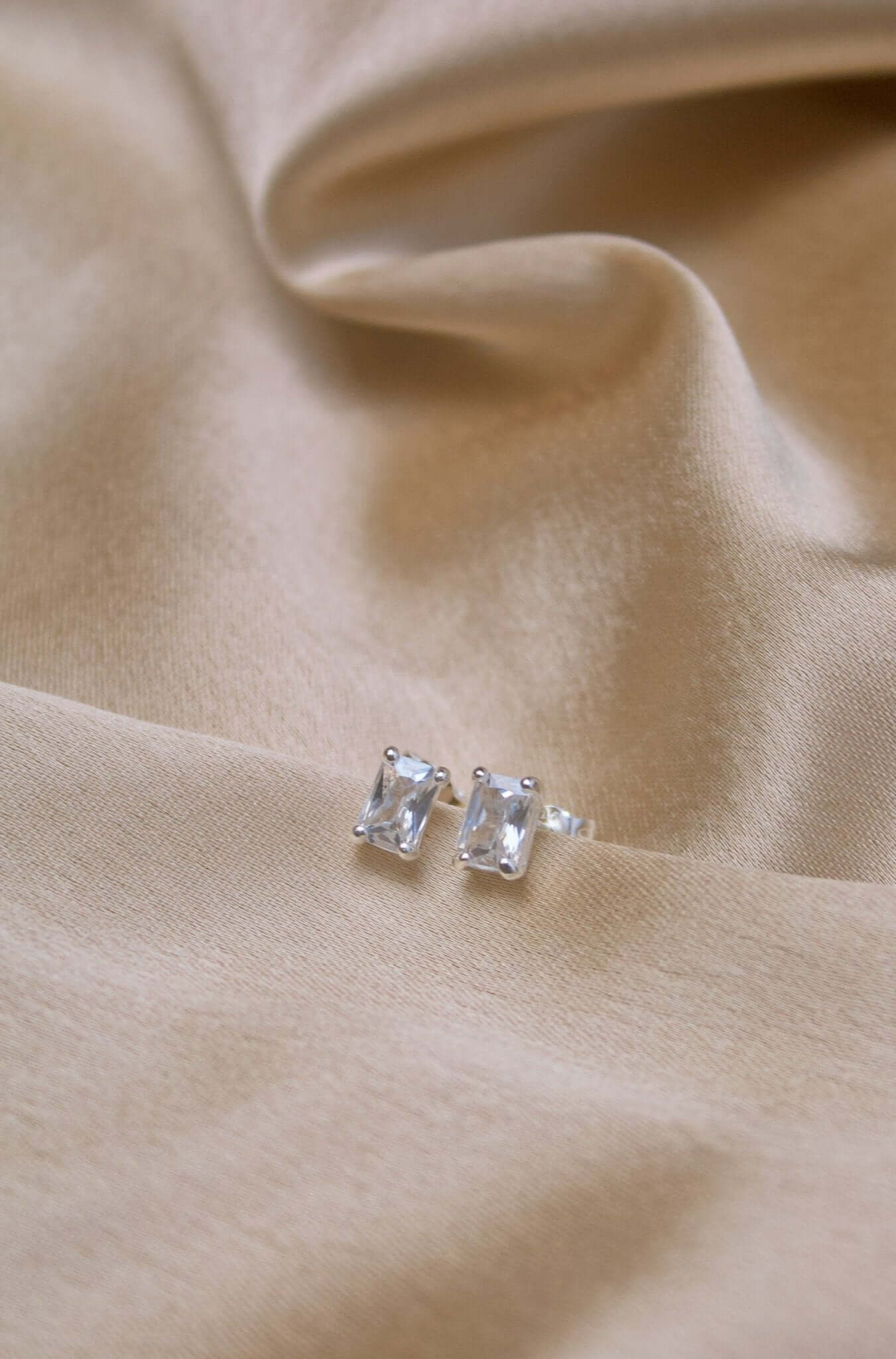 Sterling Silver Rectangle Cubic Stud Earrings