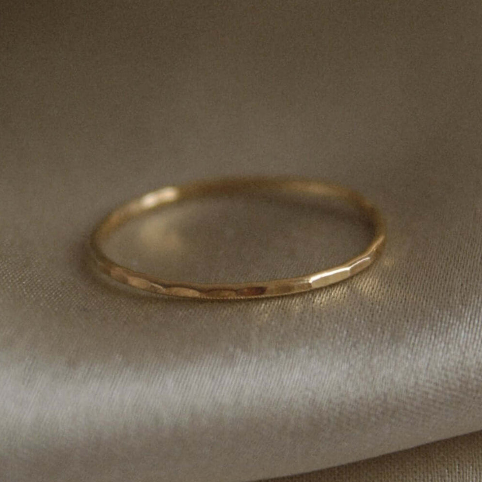 14K Gold Ring Hammered Finish